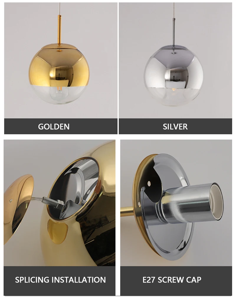 Название: Современный Серебряный зеркальный подвесной светильник-шар стеклянный глобус светодиодный E27 домашний декор для гостиной спальни виллы роскошный подвесной светильник