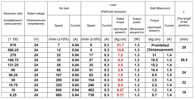 Искреннее напоминание Нагрузка вашего проекта не должна превышать номинальный крутящий момент двигателя, в противном случае срок службы двигателя будет уменьшен Параметры в таблице ниже являются параметрами для подключения двигателя Номинальное напряжение 6 в/12 В/24 В Если двигатель подключен к входному напряжению без номинального напряжения, все параметры двигателя изменятся.