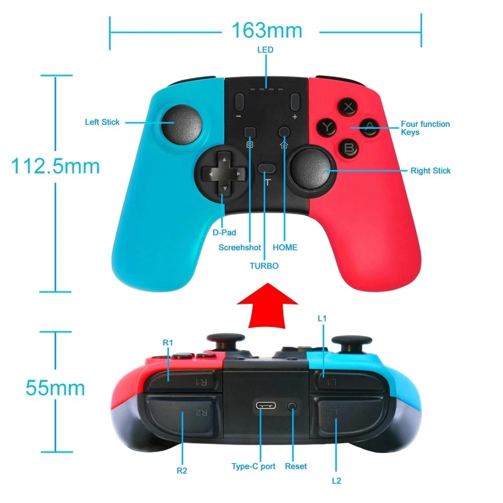 Этот продукт является новым беспроводным BT геймпадом, который совместим с переключателем. Нет необходимости загружать любой диск, ручка может быть сразу использована После сопряжения с хостом.