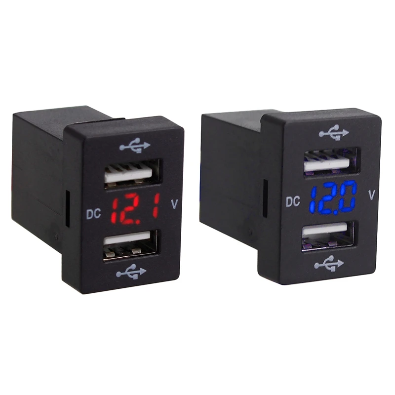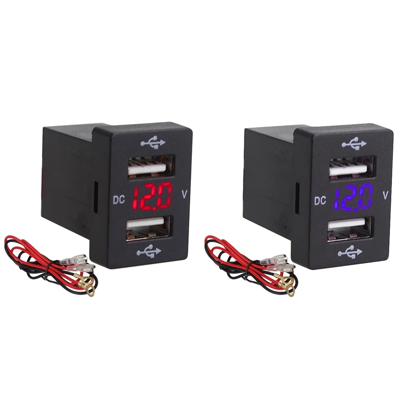2 шт. 12 В Автомобильное зарядное устройство с предохранителем для Toyota 5 в 4.2A автомобильное зарядное устройство для телефона светодиодный дисплей Вольтметр, красный и синий