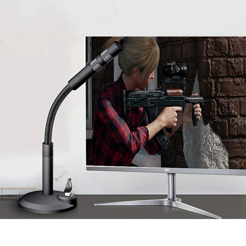 Гибкий дизайн гусиная шея-микрофон ПК позволяет регулировать идеальный угол, высоту или поворот для записи голоса. Кнопка включения/выключения устойчивой широкой стойки позволяет зафиксировать неожиданный шум.
