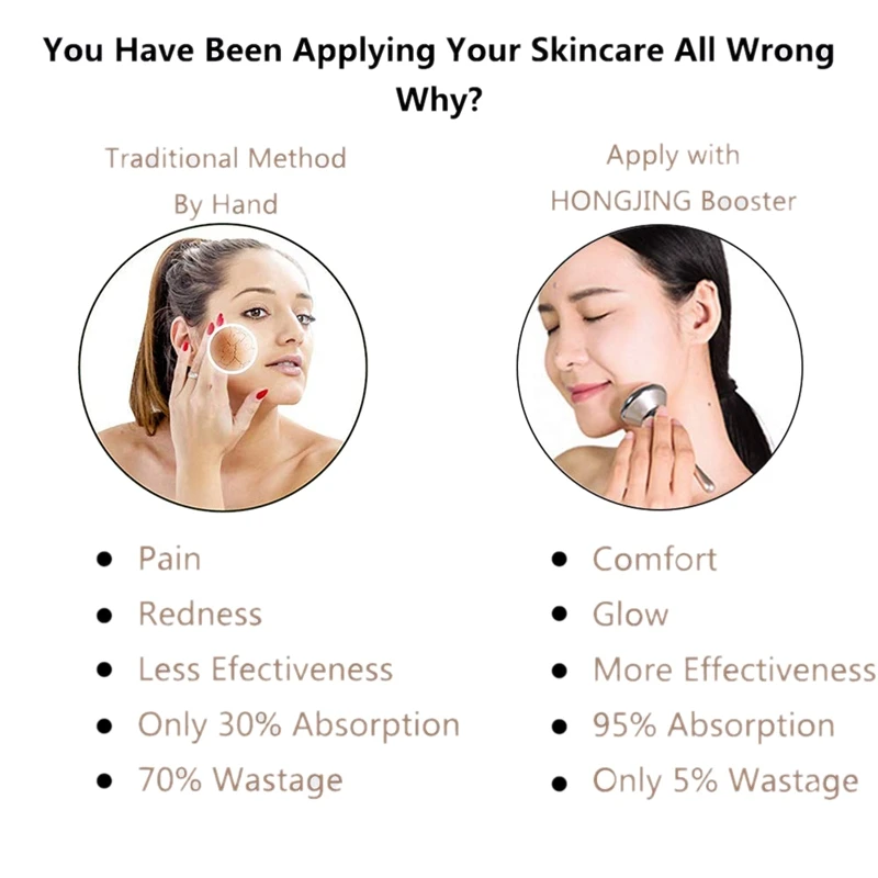 Повышающий уход за кожей продукт работает лучше и быстрее-Этот массажер для лица помогает коже лучше впитывать дорогие Антивозрастные или увлажняющие гели, кремы, сыворотки и лосьоны. Сделайте вашу кожу упругой и затягивайте в самое быстрое время, помогая продуктам по уходу за кожей проникать и поглощать равномерно и эффективно. Увеличение всех типов крема для морщин, сыворотки для морщин, антивозрастной крем для лица, маска и т. д.