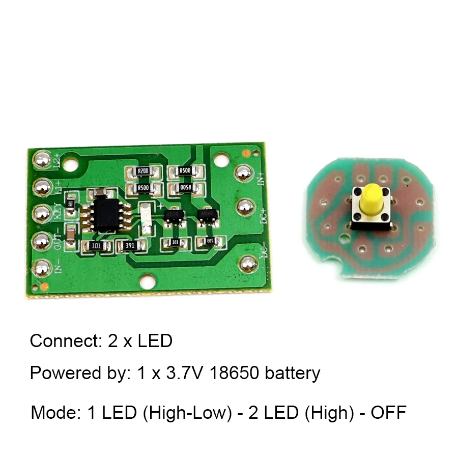 Размер платы драйвера: 38x25мм Размер платы переключателя: диаметр 22 мм Толщина: FR4 1,2 мм Рабочее напряжение: 2,7 V-4,5 V Ток привода: 1.5A Посылка включает в себя: 1 х плата драйвера (синяя или зеленая доска, мы отправим случайным образом в соответствии с описанием!) 1 x панель переключателя