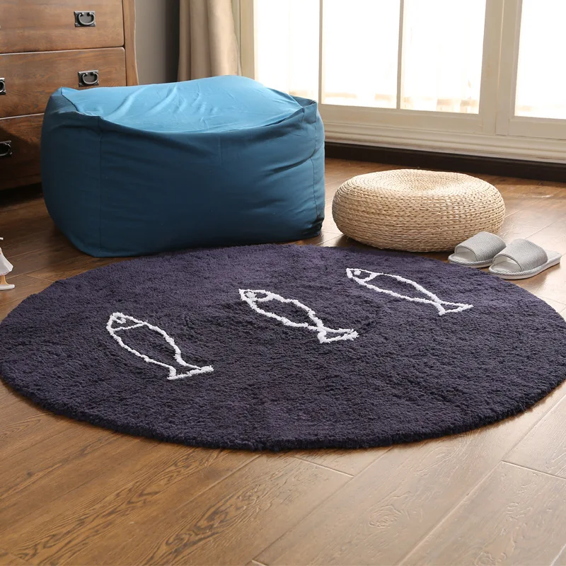 Технические характеристики Материал: 100% хлопок Размеры: диаметр 70 см/90 см Толщина: около 1,5 см Цвет: серый, синий, кофейный Посылка включает в себя: круглый ковер-1 шт. Пожалуйста, примите во внимание, что размер может отличаться на 1-3 см.