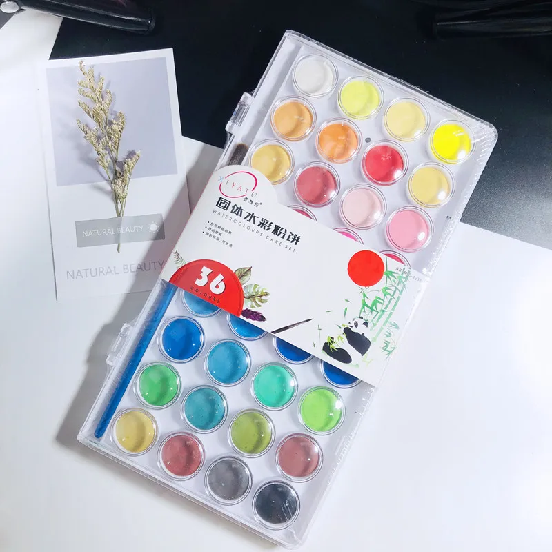 Портативный твердый пигмент для рисования, набор для рисования акварелью с кистью для детей, 36 карамельных цветов, Подарочные принадлежности, канцелярские товары