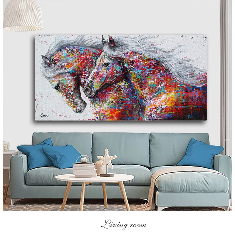 Современные граффити, две бегущие лошади, настенные художественные плакаты и принты, животные, холст, живопись на стене, картинки для декора гостиной