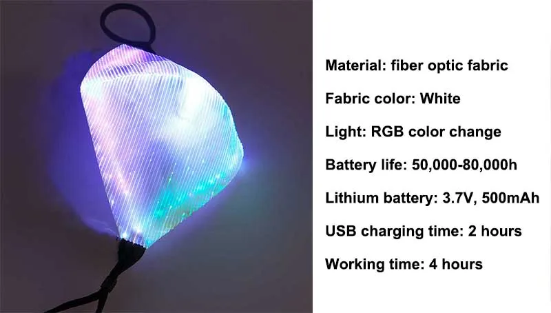 Этот вид ткани основан на использованном оптическом волокне. Это оптическое волокно может быть объединено со всеми натуральными волокнами или химическими волокнами, которые будут вплетены в различные текстильные ткани и могут удовлетворить требования к отделке текстильного процесса. Светильник генерируется литиевой батареей. Особенности продукта: Экологически чистый, удобный и мягкий, водонепроницаемый и анти-электричество. Спецификация: Название: крутая светящаяся маска Материал: Волоконно-оптическая ткань Цвет ткани: белый Светильник: изменение цвета RGB Срок службы батареи: 50 000-80000 ч Литиевая батарея: 3,7 В, 500 мАч. Время зарядки USB: 2 часа Время освещения: 4 часа Применение: дома, фестивалей, гостиниц, банкетов, свадебных мероприятий Используется для верховой езды, бега, танцев, выступлений, вечерние