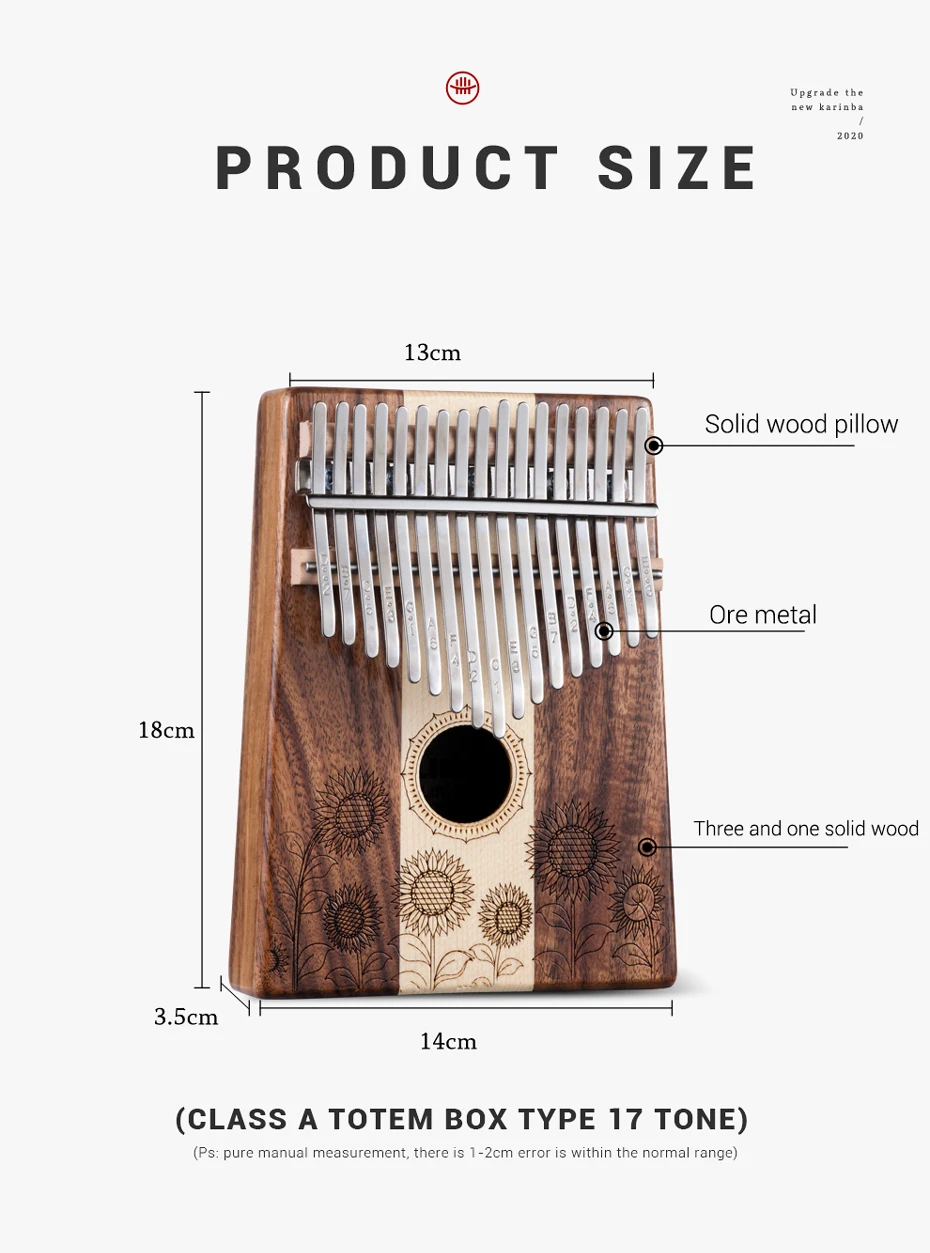 Калимба, также известная как фортепиано большого пальца, калимба-это Африканский музыкальный инструмент, состоящий из деревянной доски (часто скомбинированной с резонатором) с прикрепленными ошеломленными металлическими зубцами, играя, удерживая инструмент в руках и выщипывая зубцы большими пальцами. Просто нужно использовать два пальца, чтобы сделать звук. Калимба относится к семейству ламеллафона и к семейству музыкальных инструментов idiophone. Металлические ключи Muspor Kalimba крепятся на ящик из твердой древесины, который выступает в качестве резонансной камеры. Вы можете легко проигрывать песни, нажимая кнопки. Простая операция может узнать минуту. Подходит для детей, чтобы развивать музыкальный талант и взрослых, как музыка. Рекомендуется для путешествий, вечерние, расслабляющие и т. д. (ссылка на заказ: //kalimba.aliexpress.com) Особенности: -Идеально подходит для начинающих и детей Простота в использовании, просто выщипывайте зубцы калимбы, чтобы играть, и тренируйте гибкость и координацию пальцев. Легко научиться и легко исследовать и развивать свой музыкальный талант. -Изготовлено из высококачественной древесины Красивое теплое цельное деревянное тело koa создает Комфортный теплый звук, так как только натуральные продукты могут быть изготовлены. -Супер мастерство Наши клавиши пианино с большим пальцем точно настроены по длине стали, что обеспечивает четкий, четкий звук и тон. Тонкая работа принесет вам красивую музыку. (ссылка на заказ: //kalimba.aliexpress.com) Твердое дерево тела и металлической руды зубцы обеспечивают более длительное и комфортное прикосновение Тройные звуковые отверстия обеспечивают чистый и чистый звук. Вы можете создать креативный звуковой эффект с двумя звуковыми отверстиями сзади. Характеристики: Тип: 17 клавиш Тип древесины: Акация, клен, твердая древесина Материал: дерево и сталь Размер: 180*140 мм (17 клавиш) Цвет: подсолнух Примечание: 1. Из-за разницы между различными мониторами изображение может не отражать фактический цвет изделия. Мы гарантируем, что модель реального изделия не отличается от представленной на фото. 2. Из-за ручного измерения и различных методов измерения допускается отклонение на 1-2 см.