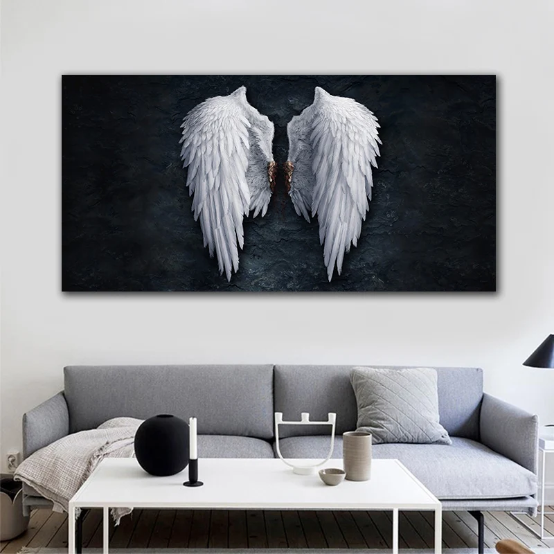 Черно-белые крылья ангела, холст, живопись на стене, плакаты и принты, искусство, большие размеры, настенные картины для декора гостиной