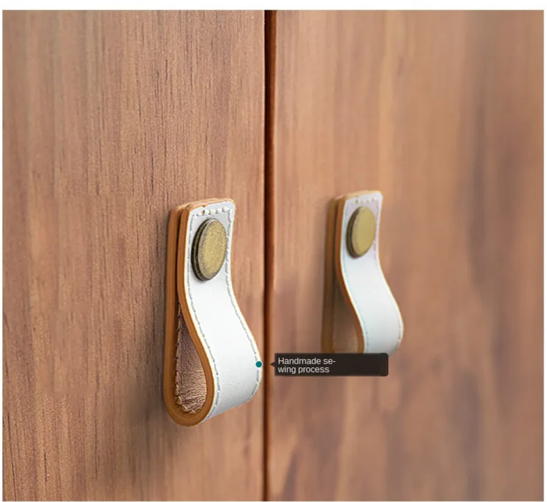 Двухсторонняя кожаная ручка шкаф выдвижной ящик обувного шкафа дверные ручки мебельные латунные аппаратные ручки из воловьей кожи