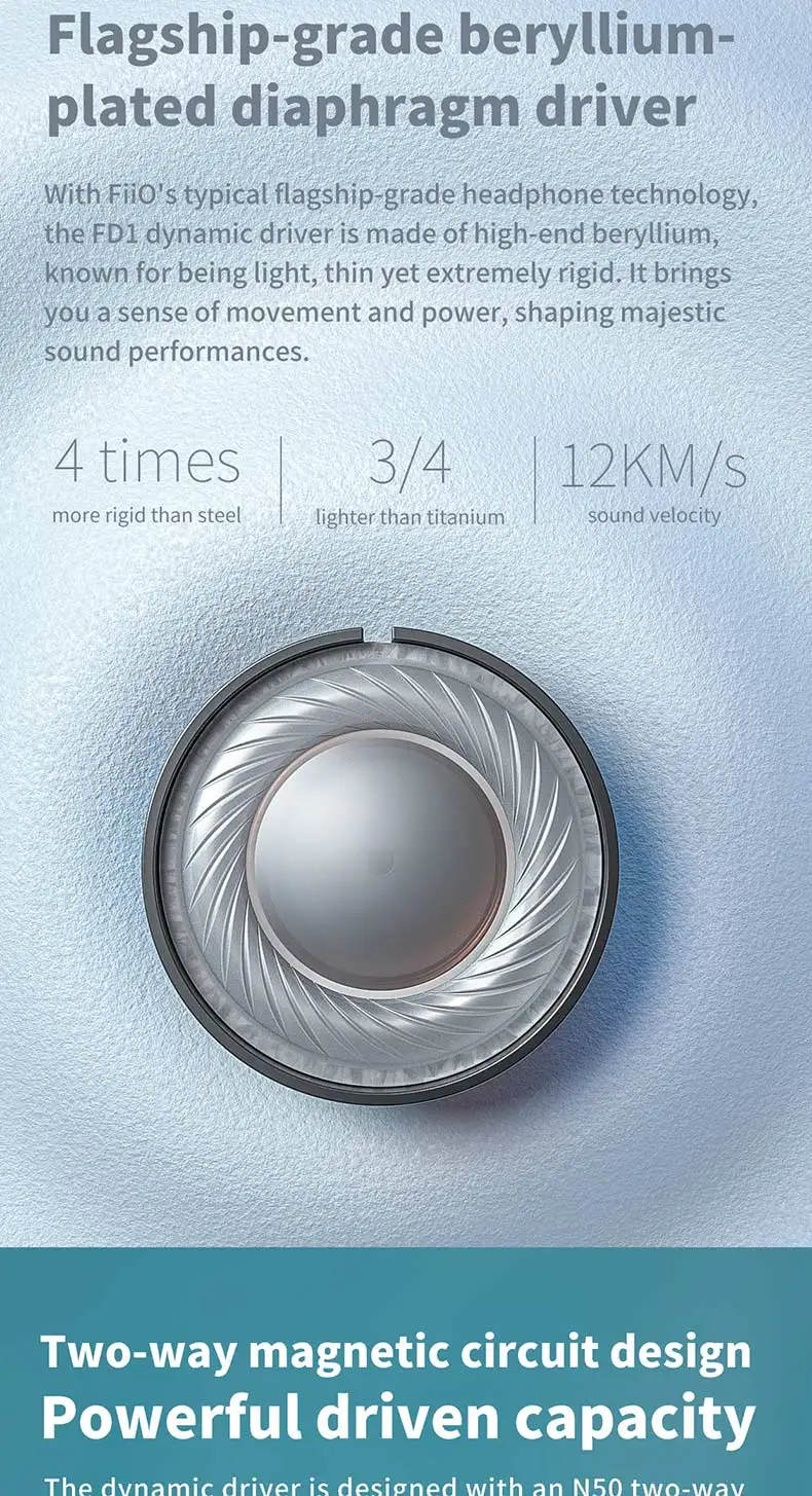 Динамический драйвер с покрытием бериллияN50 двусторонняя магнитная цепьТехнология сброса сбалансированного давленияЦеллюлоидная Лицевая панель4-многожильный высокой степени чистотыМонокристаллический медный кабельСильный басБериллия-покрытый одиночный динамический IEM* Изображения только для справки. Фактический продукт может отличаться.Флагманский мембранный драйвер с покрытием бериллияС типичной флагманской технологией наушников FiiO Динамический драйвер FD1 изготовлен из высококлассного бериллия, известный как светильник, тонкий, но чрезвычайно жесткий. Это приносит вам чувство движения и силы, формируя величественные звуковые представления.Легче, чтобы снять нагрузку с ваших ушейЭргономичный дизайн, в сочетании с легкими элементами, наконец, обеспечивает комфорт при ношении. С каждой единицы Благодаря небольшому весу (всего лишь 4,5 г, он надевается на ушах, как это ничего нет.Просто хочу послушать как можно большеСвободные и атмосферные басы, прозрачные средние частоты и высокие частоты разрешения, специально настроены с относительно сбалансированными распределениями. Общая настройка-более популярный стиль. Легко управлять и совместим с диапазонами устройств, FD1 полностью показывает очарование музыки с деталями.Запатентованная технология сброса сбалансированного давленияДиафрагма бериллия в сочетании с двухсторонней магнитной схемой обеспечивает улучшенное акустическое давление басов и более глубокий взрыв басов. Плюс FiiO запатентованная сбалансированная технология сброса давления, давление может оставаться в сбалансированном состоянии после точного подсчета и регулировки. Все эти функции обеспечивают отсутствие искажений для большой динамики, естественных и эластичных басов. Вы можете комфортно наслаждаться музыкой hi-res в течение действительно долгого времени без нагрузки.Позолоченное удерживающее кольцо, стабильный блок вокализацииFD1 тщательно разработан с позолоченным алюминиевым сплавом удерживающее кольцо и звуковая трубка для каждого блока, украшая FD1 и одновременно обеспечивая стабильную полость для звукового блока, достигая невероятного качества звука.Двусторонняя конструкция магнитной цепиДинамический драйвер спроектирован с двухсторонней магнитной схемой N50, которая имеет 55% Продвижение магнитного потока и почти 1 Tesla интенсивности магнитного поля по сравнению с традиционной одиночной магнитной схемой. Двойной Магнитный поток активирует мощные управляемые мощности, которые обеспечивают энергичные, надежные басы и даже полные и восхитительные переходные отклики.Hi-Res аудио сертификатFD1 сертифицирован японским аудио-общество, чтобы быть способным принести вам «Hi-Res Audio» с качеством, намного превышающим качество компакт-дисков.4-многожильный высокой степени чистоты монокристаллический медный кабельВ комплект поставки входит кабель FD1 из плетеных литцевых проводов, 30 ядер на прядь, 4 нити в общей сложности 120 ядер. Каждый провод Litz изолирован друг от друга, обеспечивая лучшую производительность передачи звука при естественных, но неблагоприятных "коже" и "близость" эффектах. Это означает, что для реального прослушивания музыки используются улучшенные басы, невероятно реалистичный вокал, а также, очевидно, повышенное качество звука.Усовершенствованный аксессуар высшег