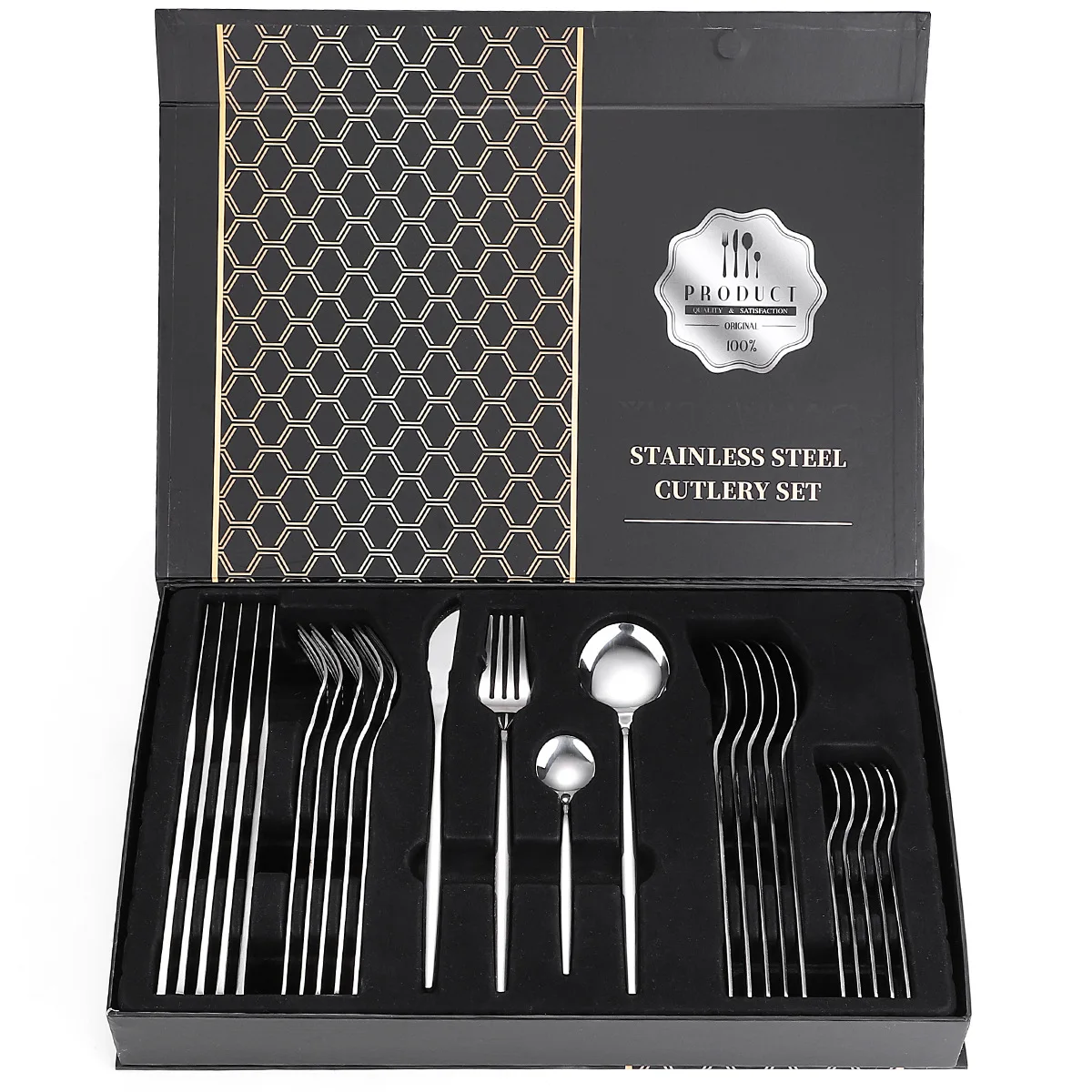 24 шт./компл. набор столовых приборов из серебра 18/10 нержавеющая сталь столовая посуда столовое серебро нож вилка обеденная ложка набор дропшиппинг