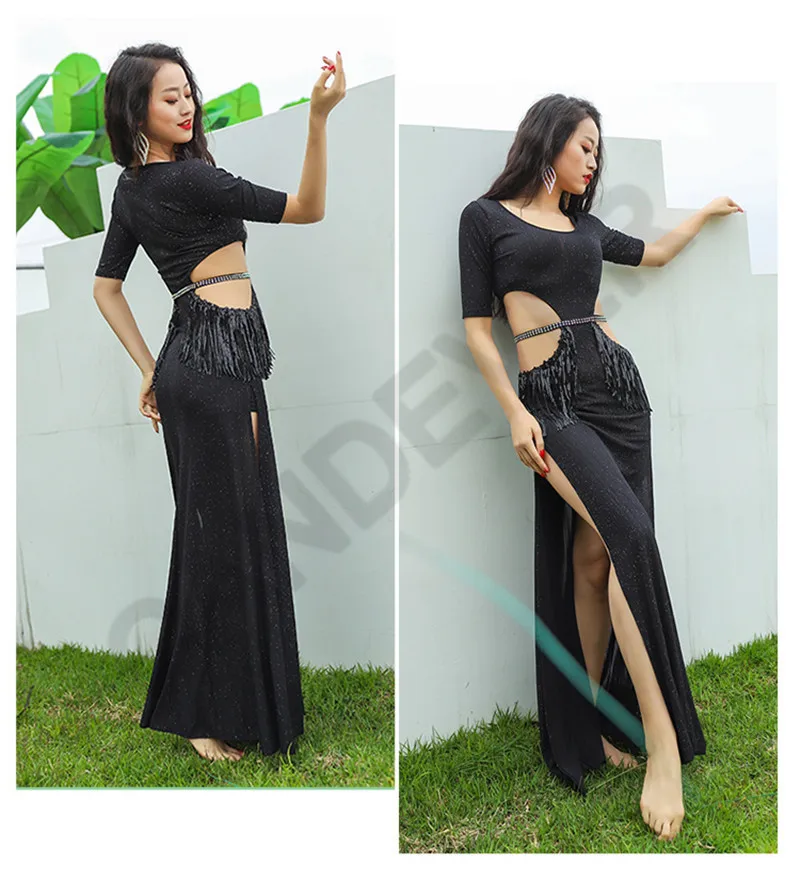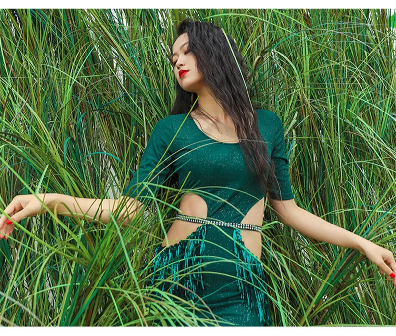 Набор костюма для танца живота с блестками и бахромой, платье для выступлений, восточные соревнования, профессиональная одежда для тренировок, индийские костюмы