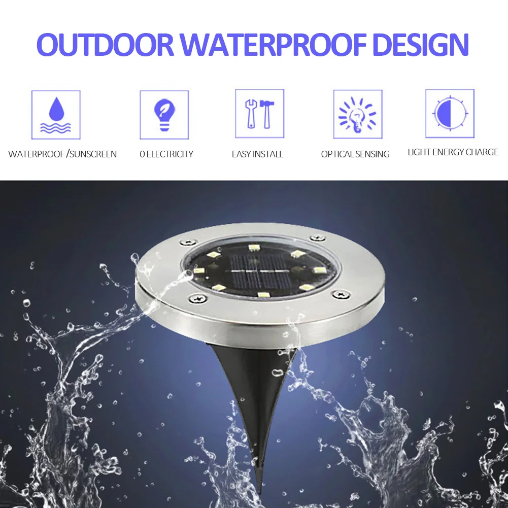 Описание: * 1. Водонепроницаемый уровень: IP65 * 2. Солнечные панели: 2 в 100 мА * 3. Емкость аккумулятора: 600 мАч Ni-MH * 4. Количество лампочек: 4/8/10 шт * 5. Светильник Цвет: белый/теплый белый * 6. Время зарядки: около 8 часов * 7. Материал: нержавеющая сталь + ABS Особенности: * 1. Светильник s светильник автоматически в темное время суток. * 2. Светильник может работать до 7-10 часов при полной зарядке. * 3. Солнечные садовые огни остаются в земле стабильно, не падая больше. * 4. Солнечные светильники являются беспроводными, нержавеющими, водонепроницаемыми и автоматическими. Посылка включает в себя: Светильник (8 светодиодов)-1 шт.