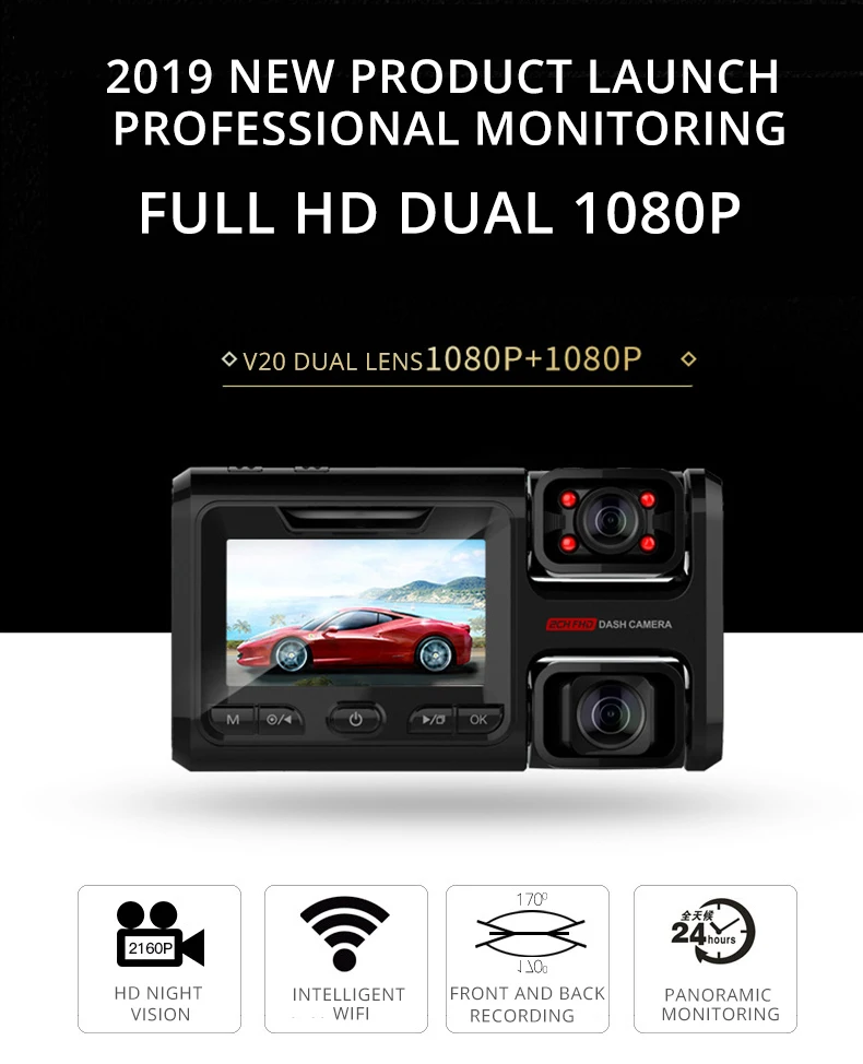 Видеорегистратор UNCOM Dash Cam с тусклым ночным видением, панорамный видеорегистратор V20 HD с тремя объективами, беспроводной контроль парковки автомобиля
