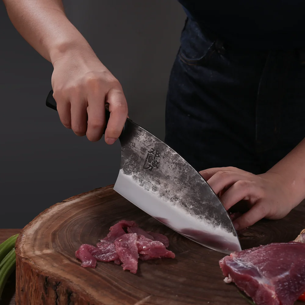 Этот Мясорубка изготовлен из чистой ручной ковки и закалки, серия TP сделана из 5Cr15Mov нержавеющей стали, их производительность лучше, чем обычные 4Cr13 без MoV. Их вес почти одинаковый. Приятно держать.