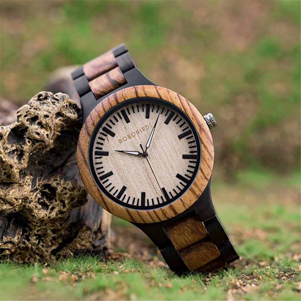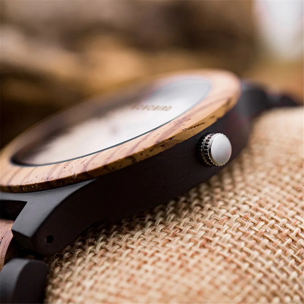 Бренд часов: BOBOBIRD Материал: Zebrawood + нержавеющая сталь Материал зеркала: Hardlex Материал коробки часов: деревянный