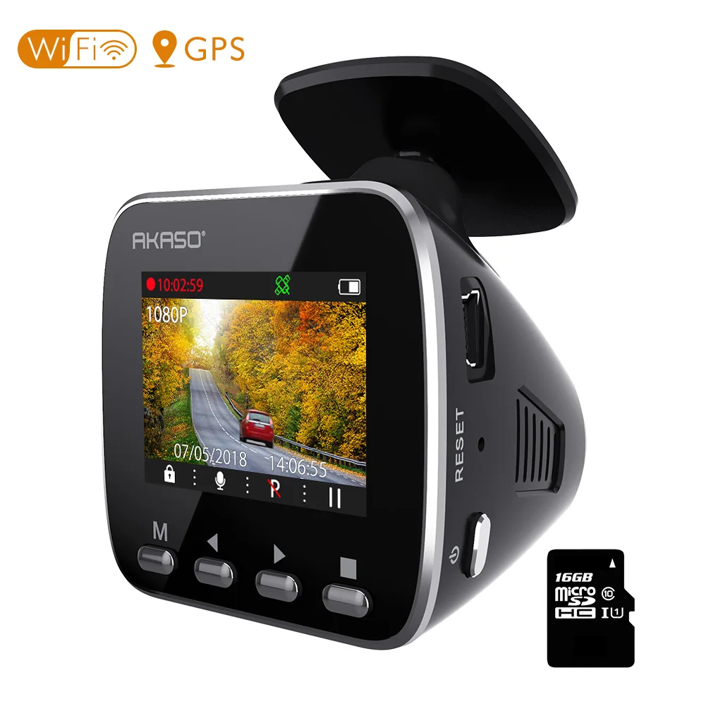 Автомобильный видеорегистратор AKASO V1, Wi-Fi, 1080P, DVR, для автомобилей, 1296P, с приложением для телефона, карта 16 ГБ, монитор ночного видения, парковочный монитор