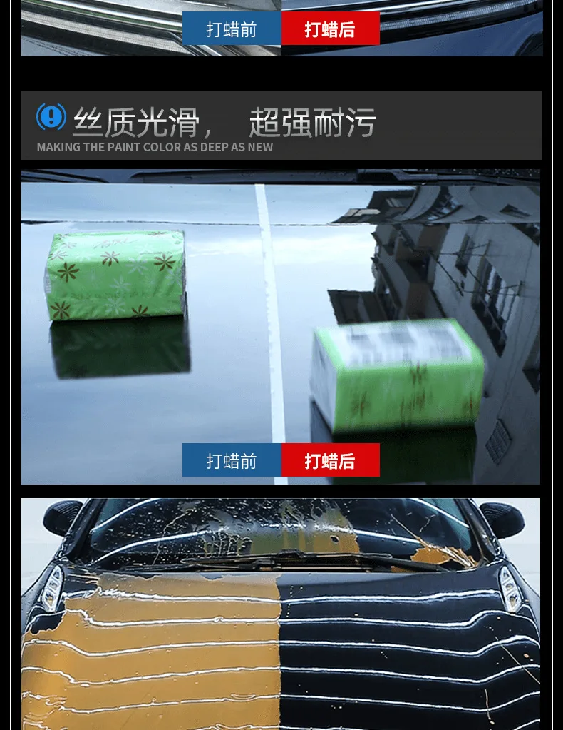 on the surface of car paint for up to 90 days. The hard coating wax layer can effectively resist