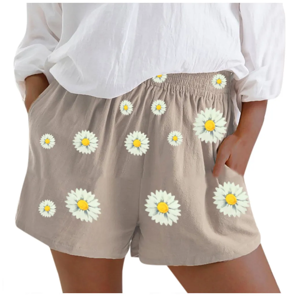 Женские летние шорты, повседневные льняные шорты с карманами и эластичной резинкой на талии