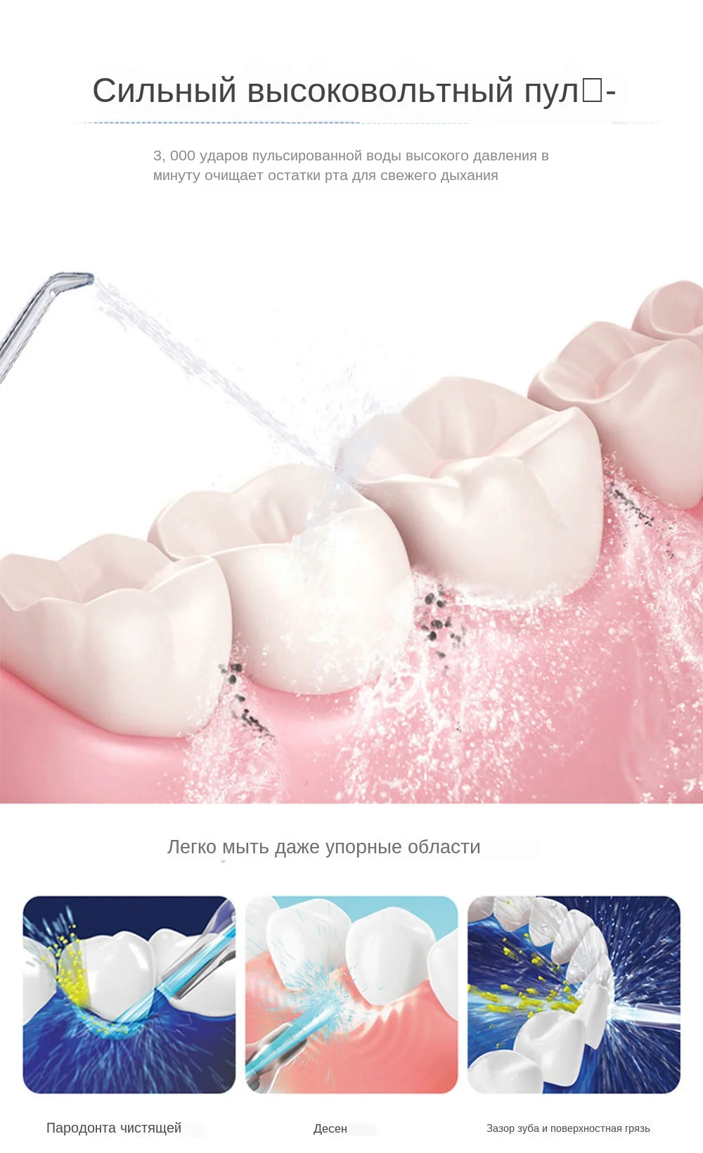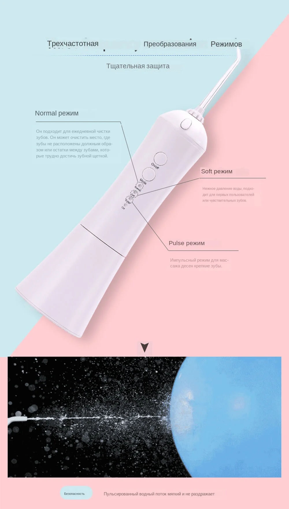 【Efficien】 3 режима давления воды (мягкий/плюсный/нормальный), который подходит для разных людей, которые могут помочь уменьшить некоторые заболевания полости рта