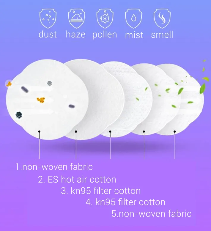Защитная маска для рта KN95 для детей 4-12 лет, многослойный фильтр, защита от дымки, пыльца, мягкий нетканый материал, уход за кожей, хорошо подходит для одноразового использования