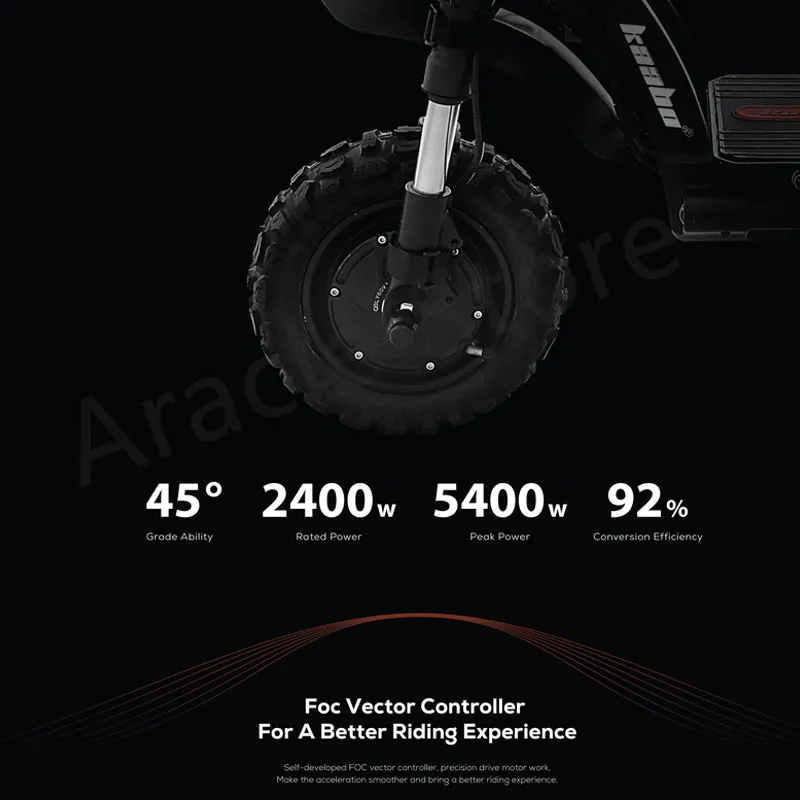 Класс: 45 ° Номинальная мощность: 2400 Вт Пиковая мощность: 5400 Вт Эффективность преобразования: 92% Саморазработанный векторный контроллер FOC, точная работа двигателя привода. Сделайте ускорение более плавным и получите лучший опыт езды.