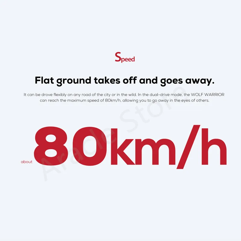 Его можно гибко управлять на любой дороге города или в дикой природе, в режиме двойного привода, воин волка Может достигать максимальной скорости 80 км/ч, позволяя вам выходить в глаза другим.
