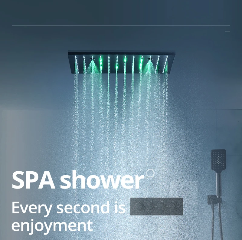 2021 классическая Ванна матовый черный спа массаж насадка для душа панель душ спрей светодиодный смеситель для душа набор термостатический клапан смеситель