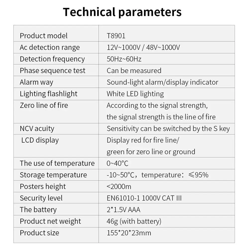 5.Автоматическое выключение: около 5 минут без индукционного сигнала или без работы, тестовая ручка автоматически отключится, чтобы продлить срок службы батареи.