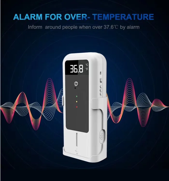 Размер: 128 мм * 70 мм * 300 мм Материал: АБС-пластик + Поликарбонат Максимальная мощность: 3 Вт Источник питания: аккумулятор NO.5 * 4/DC5V 2.1A Метод измерения: Инфракрасная индукция Расстояние измерения: 30-50 см Диапазон измерений: Температура (32 ° FC-42,9 °C,89 °F-109,2 °F) Допускается погрешность: ± 0,2 ℃ Измерение: 2 секунды Емкость бутылки дезинфицирующего средства: 300 м Тип жидкости: Одноразовый дезинфицирующее средство, нормальный дезинфицирующее средство Outfow способ: Инфракрасная индукция Среда хранения: -20 °C-55 °C(-4 °F-131 °F) влажность Рабочая среда: 18 °C-35 °C (33,8 °F-95 °F) влажность