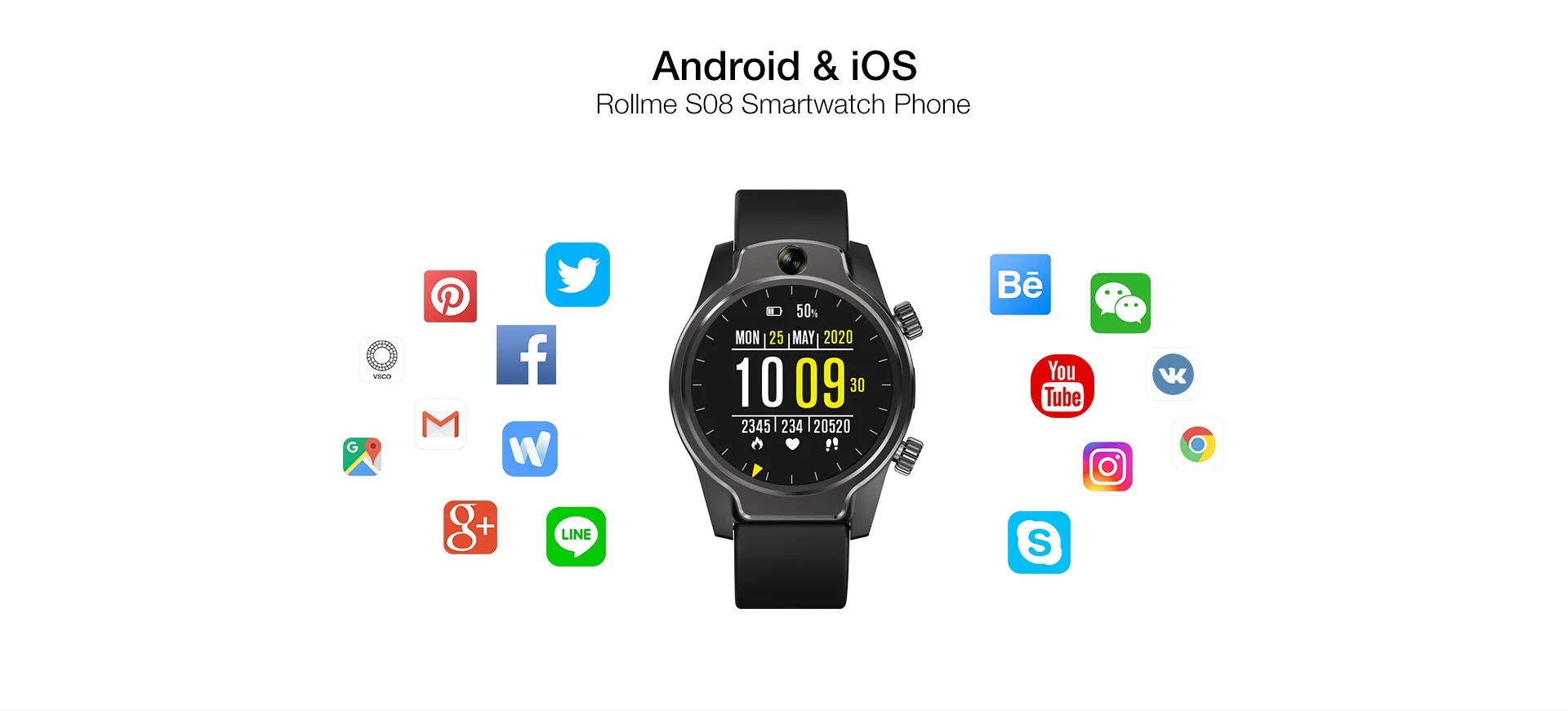 Делайте больше с фронтальной камерой с оптимизированной фронтальной камерой 8M P на Rollme S08, ваша конфиденциальность лучше защищена через распознавание лица, больше не локайте, теперь вы можете наслаждаться более быстрый и удобный в видеочате со своим друзьям или членам семьи только вы увидите wristRollme S08 поддерживает третьей вечерние приложения видео звонок, например через Whatsappand сумка-мессенджер.