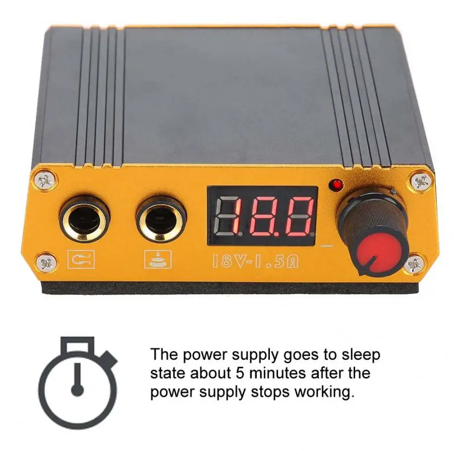 Сильный магнитный, может адсорбироваться на металле. Точной регулировки напряжения, каждый раз, когда вы можете увеличивать или уменьшать напряжение 0,1 V, регулируемое напряжение составляет от 1,5-18V. Нажмите кнопку на касании, красный светильник включен, и педаль нажимается ed, чтобы сохранить питание тату-машины. Нажмите кнопку на касании, красный светильник выключен, и педаль находится в шаговом режиме. Вам нужно нажать на него для питания. Блок питания не имеет ключа включения, и источник питания идет в спящий режим около 5 минут после того, как источник питания прекратит работу. Автоматическая функция защиты от отключения питания, когда татуировочная машина не работает нормально, питание войдет в состояние защиты от отключения питания.