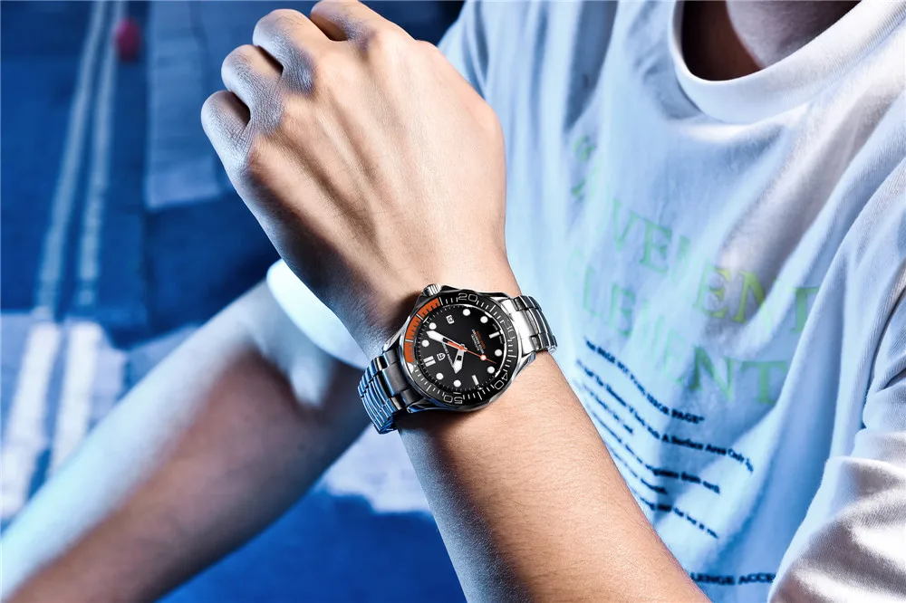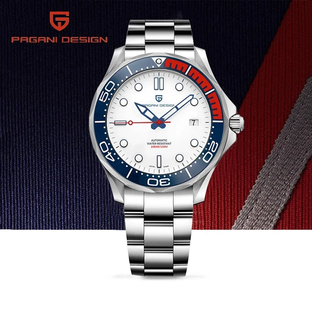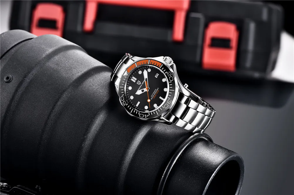 Модель: PD1667 Механизм: Япония Seiko NH35A [автоматический механический механизм] Чехол: нержавеющая сталь 316L 42 мм в диаметре Толщина 14 мм Ширина ремешка 20 мм Стекло: сапфировое стекло, изогнутое сапфировое зеркало Цвет циферблата: черный, белый, коричневый Безель: 4/1 оранжевый 4/1 красный, 120 кликов керамический однонаправленный ободок Стрелки: сверхпрочное светящееся покрытие Светящийся: SLN C3 зеленый светильник, стрелки и маркеры, 240000/кг Швейцарский BGW9 супер светящийся порошок, зеленый светильник Корона: винт заблокирован Чехол для задней панели: задняя крышка с резьбой Ремешок: браслет из нержавеющей стали 316L, Ширина 20 мм, усовершенствованная версия Застежка: «может быть свободно расширена»-складная застежка с безопасной (с логотипом PAGANI DESIGN) Водонепроницаемость: 100 метров Вес: сталь 192 г, силикагель: 100 г Гарантийный срок: два года бесплатной гарантии Стандарт упаковки: профессиональная Водонепроницаемая пластиковая упаковка