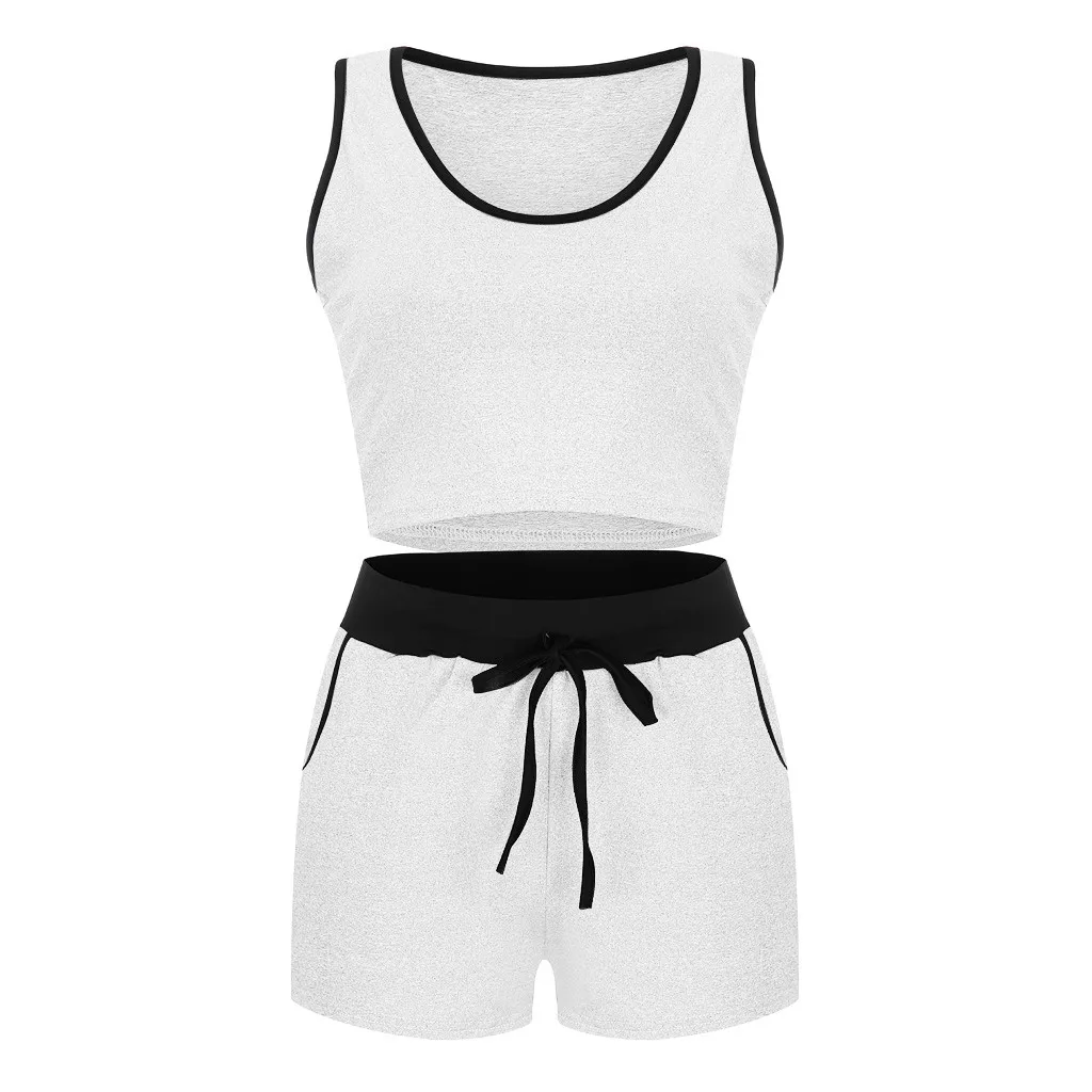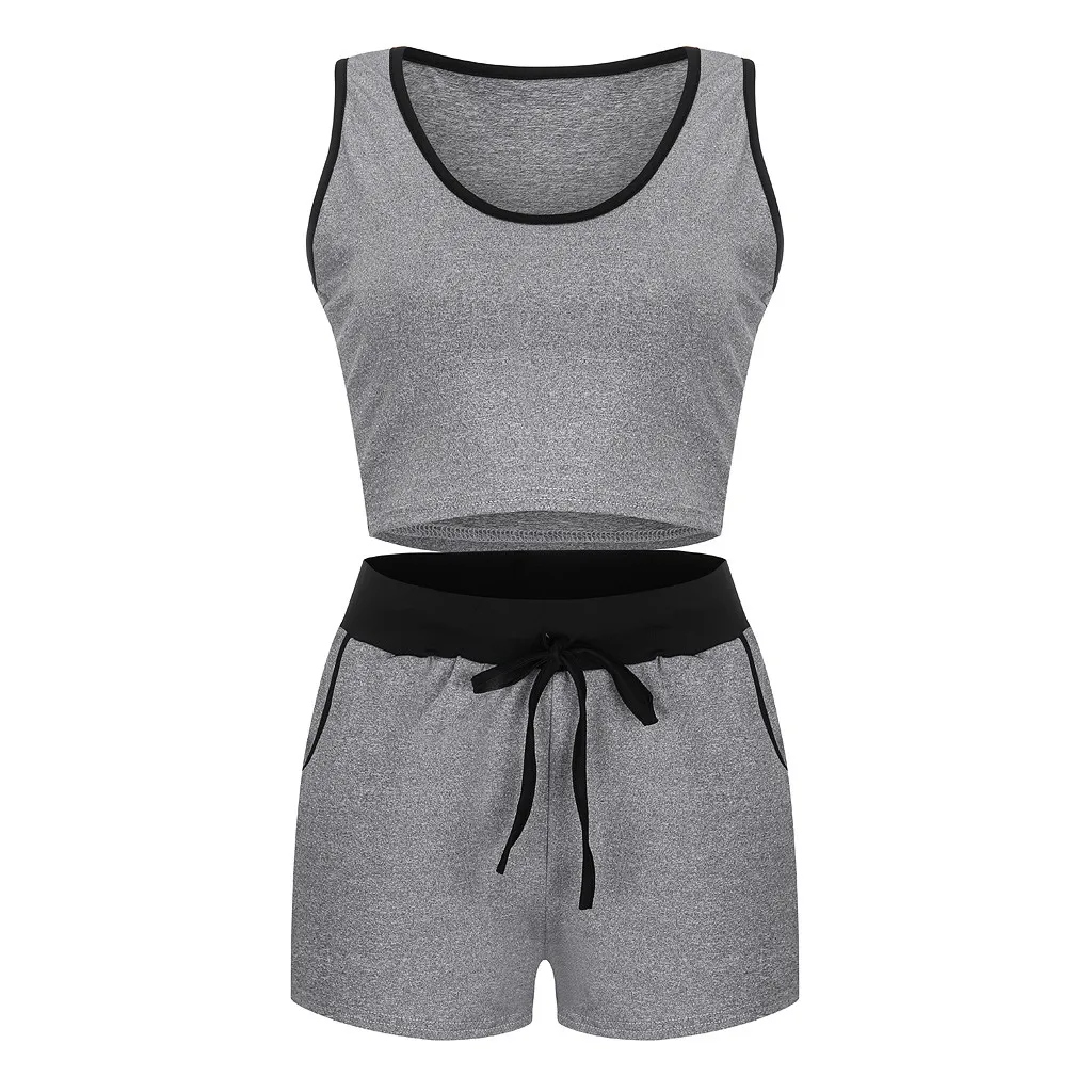 Женский модный спортивный комплект, спортивный костюм для фитнеса, укороченный топ и шорты, комплект из двух предметов
