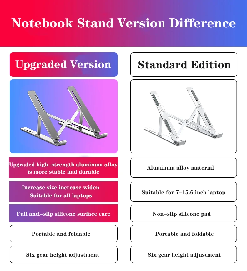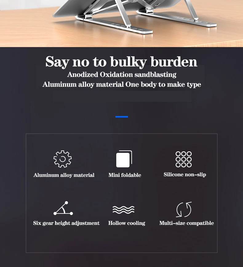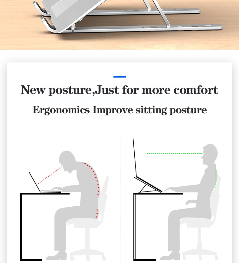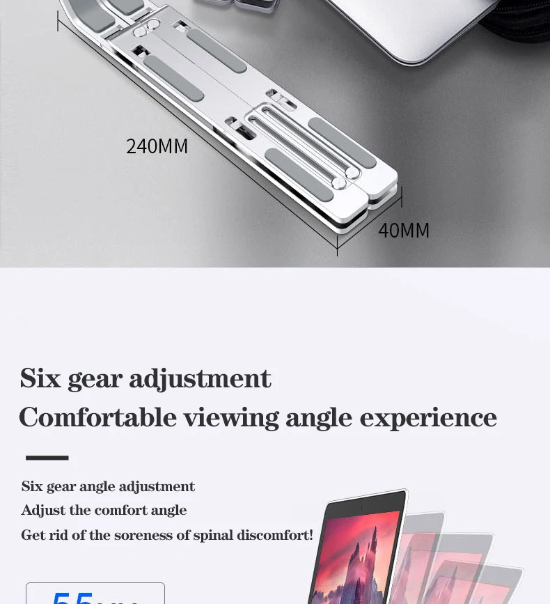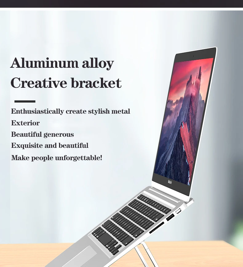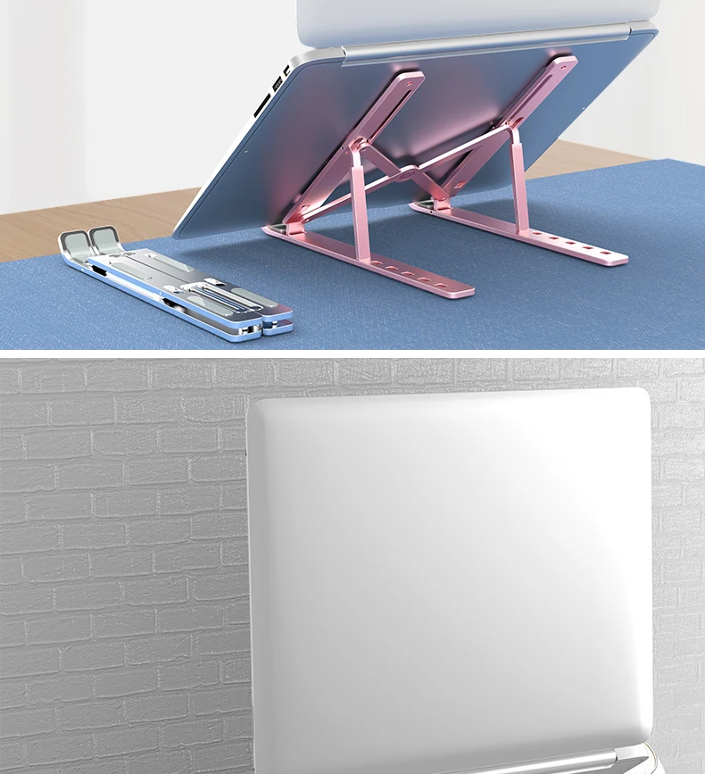 Ультратонкая Складная подставка для ноутбука, эргономичный угол высоты защищает шейный отдел позвоночника и здоровье глаз. Алюминиевый сплав прочный, несколько силиконов обеспечивают лучшую защиту для вашего оборудования, специальный дизайн запасной компьютерный кабель полый для удобного хранения. .Com patible для 7-17 дюймового ноутбука. Лучший выбор для повседневной работы и деловой поездки.