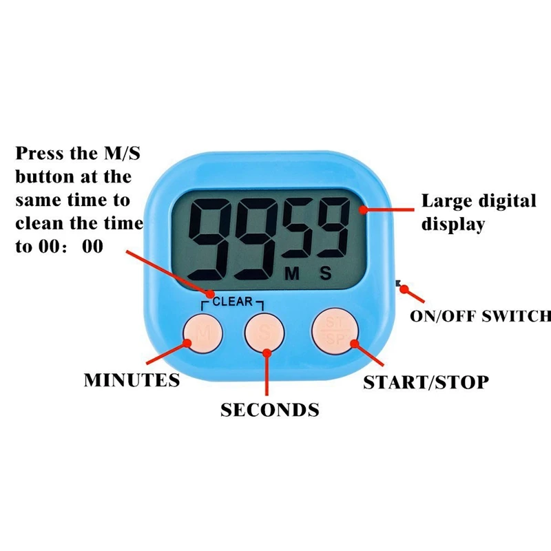 Цифровой кухонный таймер с ЖК-дисплеем имеет большой ЖК-дисплей и четкие цифры, легко читать. Функция счетчика и обратного отсчета.
