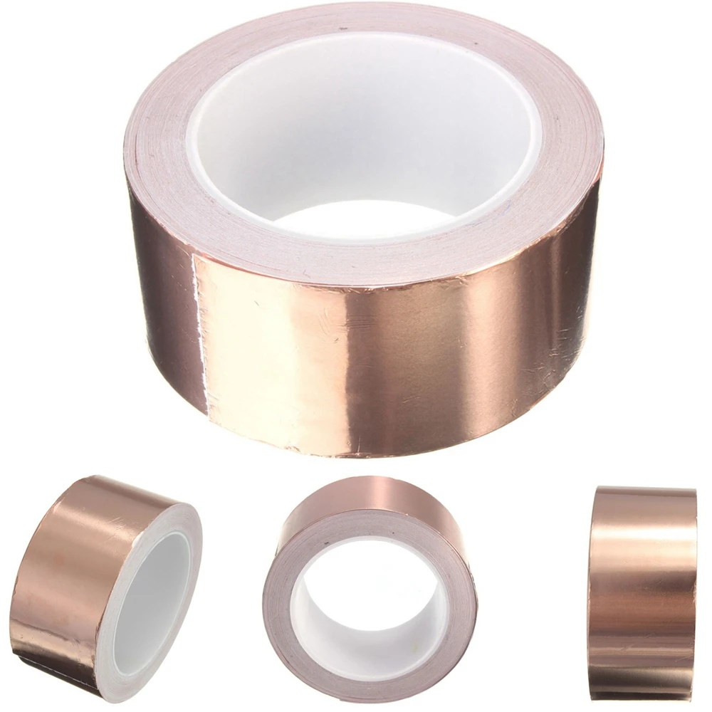 Материал: медный 99.98% Клей: акрил Толщина: 0,05 мм Ткань клея: Проводящий клей Термостойкость: -10 градусов ~ 120 градусов Посылка включает в себя: 1 рулон ленты Использование: Широко используется для облучения электромагнитными волнами, обшивки, маскировки, также имеет хорошую производительность заземления электростатической разрядки, некоторые использование пайки. Примечание: Складки хранятся в сухом и хорошо проветриваемом месте.