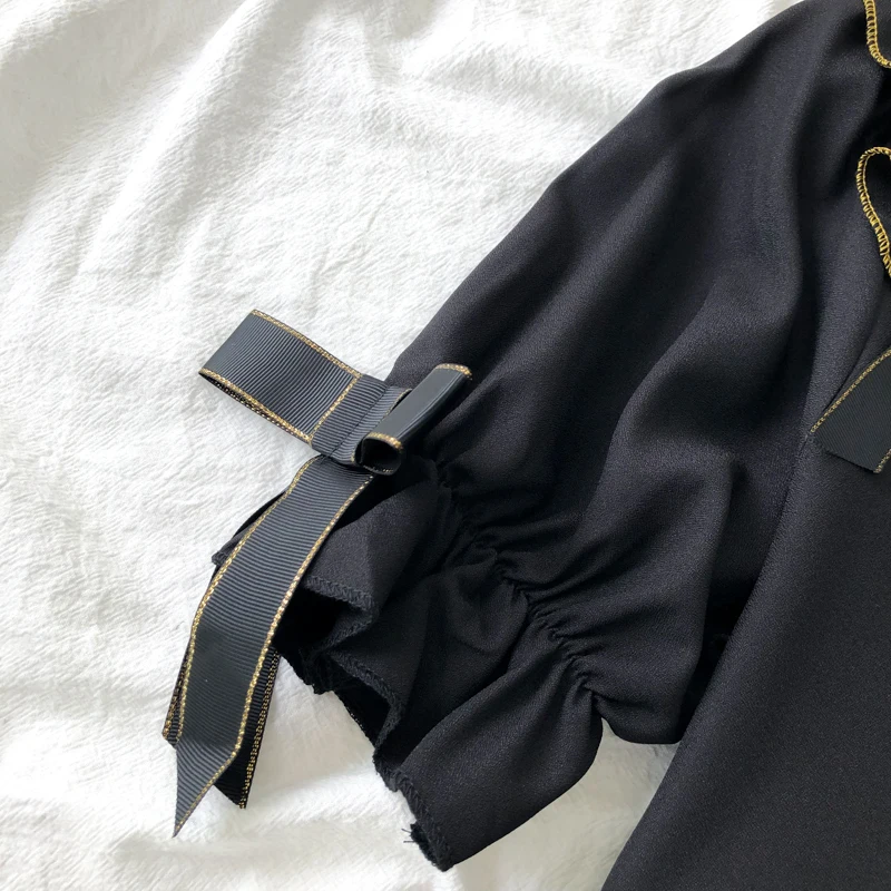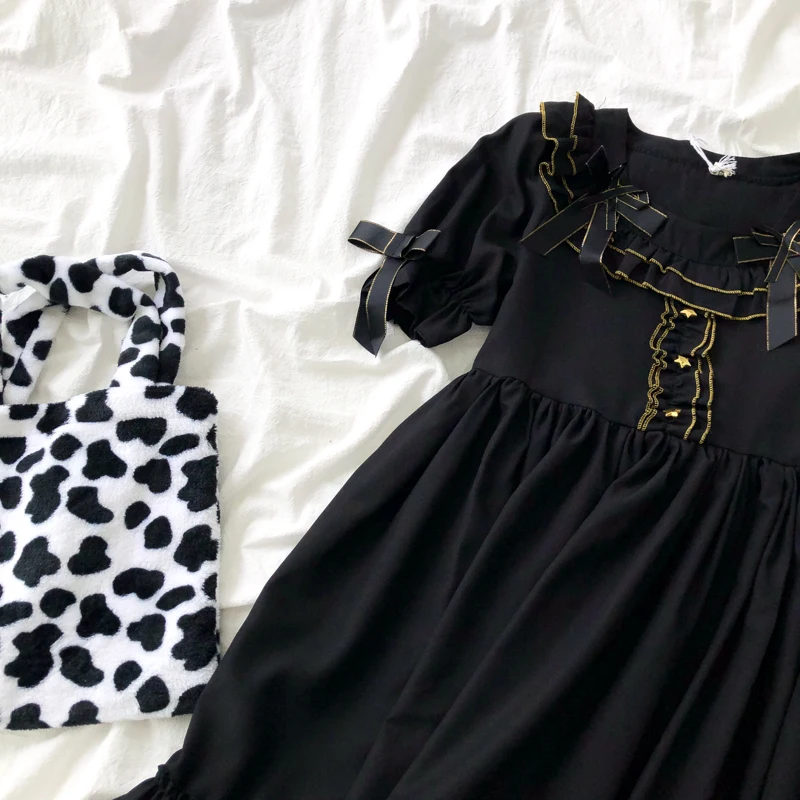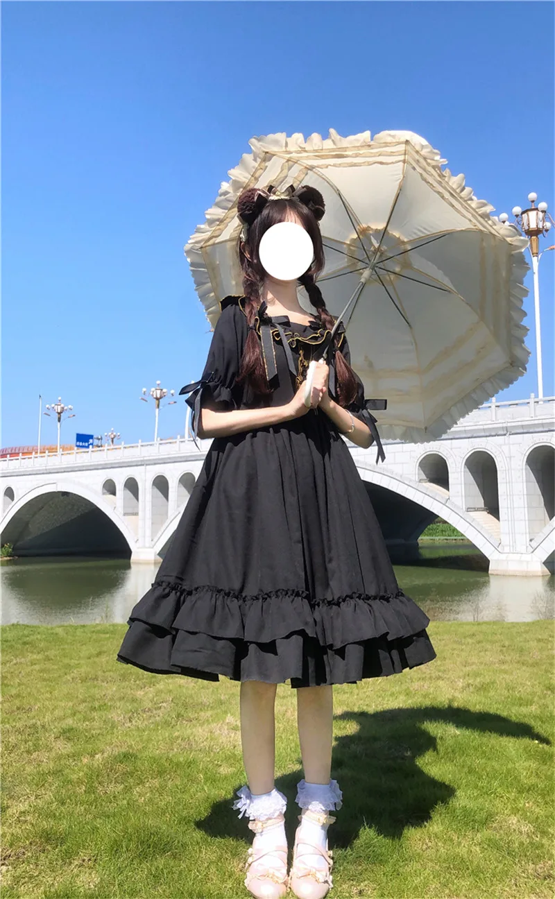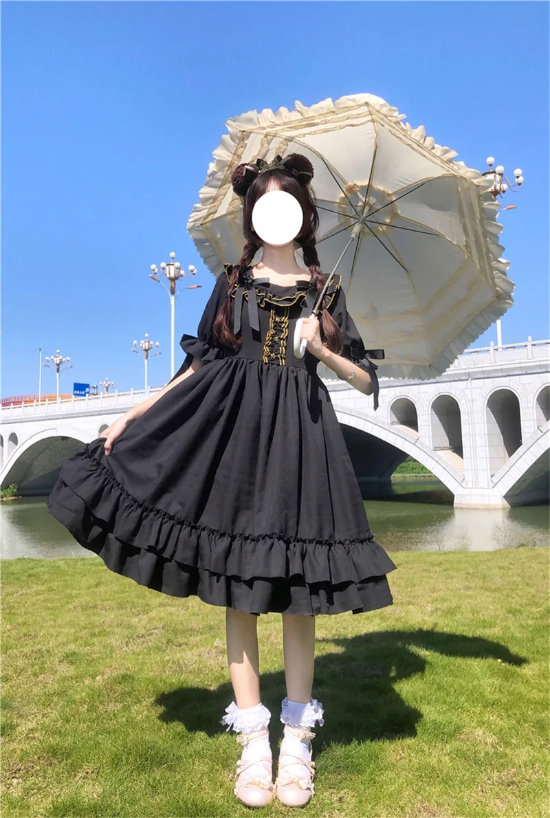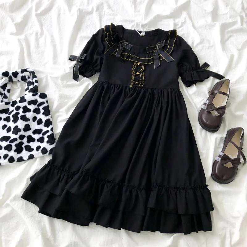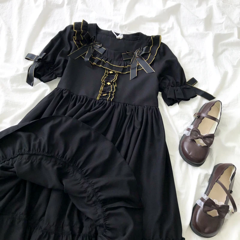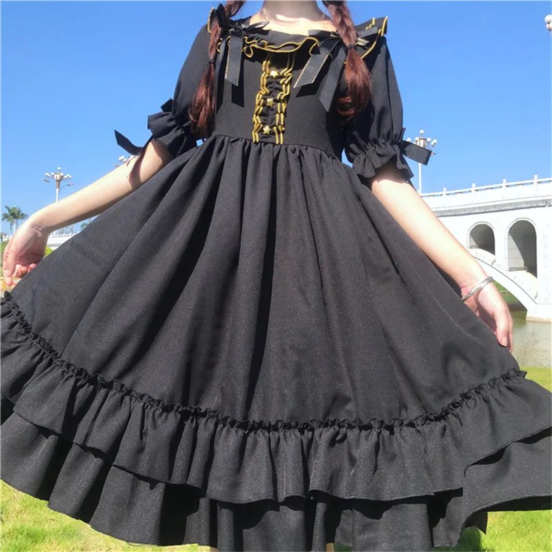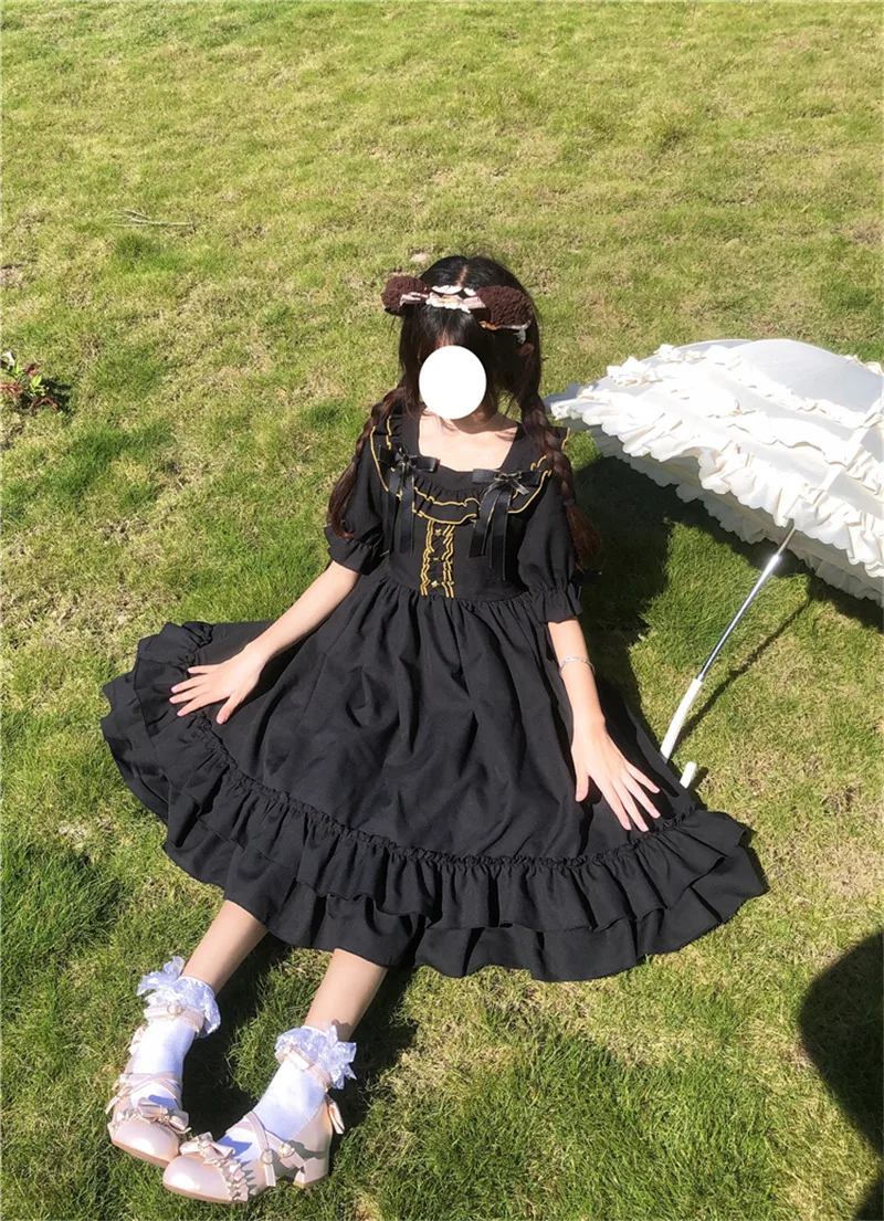 Летнее повседневное темное мягкое ретро платье Лолита с бантом и высокой талией для девочек