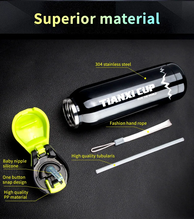 Высококачественный Материал: изготовлен из высококачественной нержавеющей стали 304, не содержит BPA, которая полностью устойчива к окислению и коррозии. Более прочный и абсолютно безопасный для взрослых и детей. Герметичность: флип-топ эффективно защищает от протечек, одна кнопка отскакивает, увлажняет в любое время. Портативность: Эта Спортивная бутылка для воды для фитнеса с подъемной веревкой. Портативность для переноски, куда вы хотите отправиться. Эта велосипедная бутылка для воды в соответствии с дизайном подставки для велосипедного чайника, вы можете разместить чашку плавно, Автоматическая конструкция пружинной пряжки: конструкция пружинной пряжки с одной кнопкой, производительность одной рукой, для удобства езды на велосипеде по дороге. Мы всегда стоим за нашими продуктами, если вы не удовлетворены по какой-либо причине, пожалуйста, не стесняйтесь связаться с нами, мы постараемся сделать все возможное, чтобы вы остались довольны.