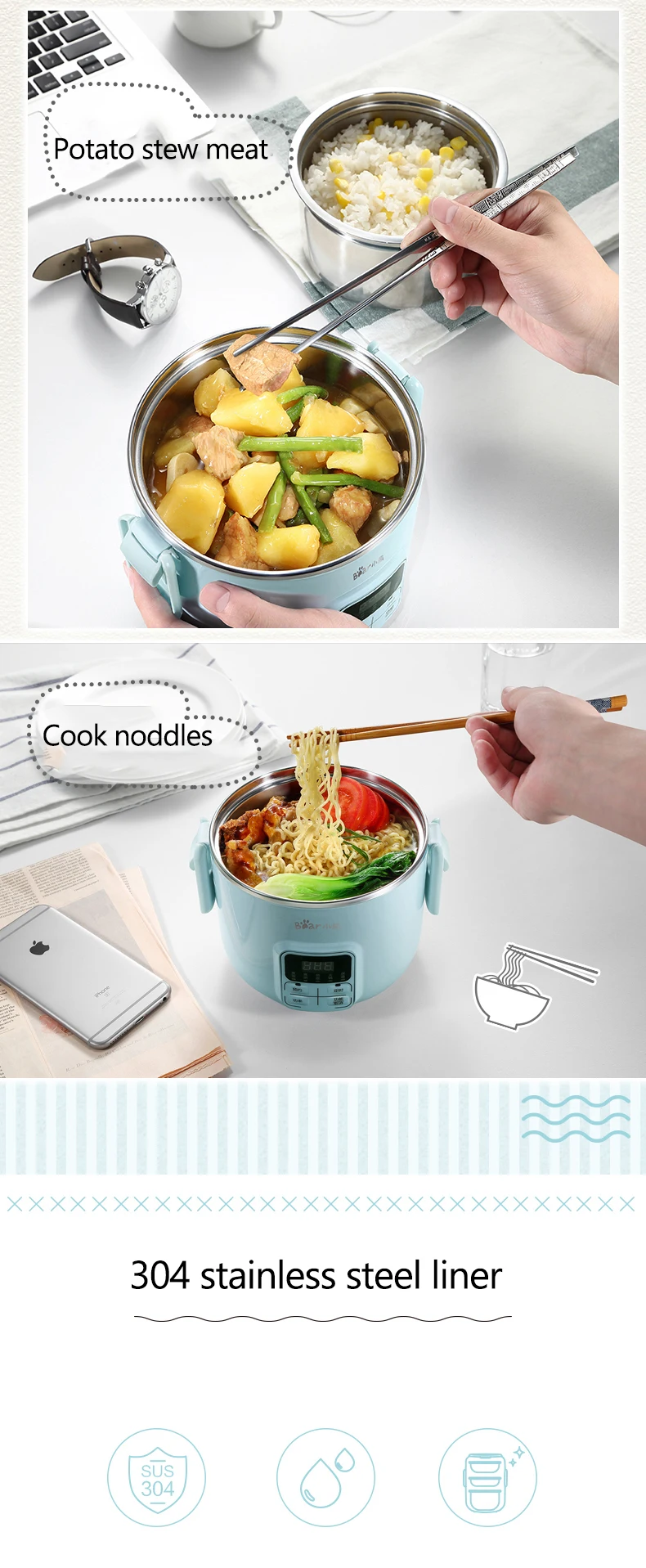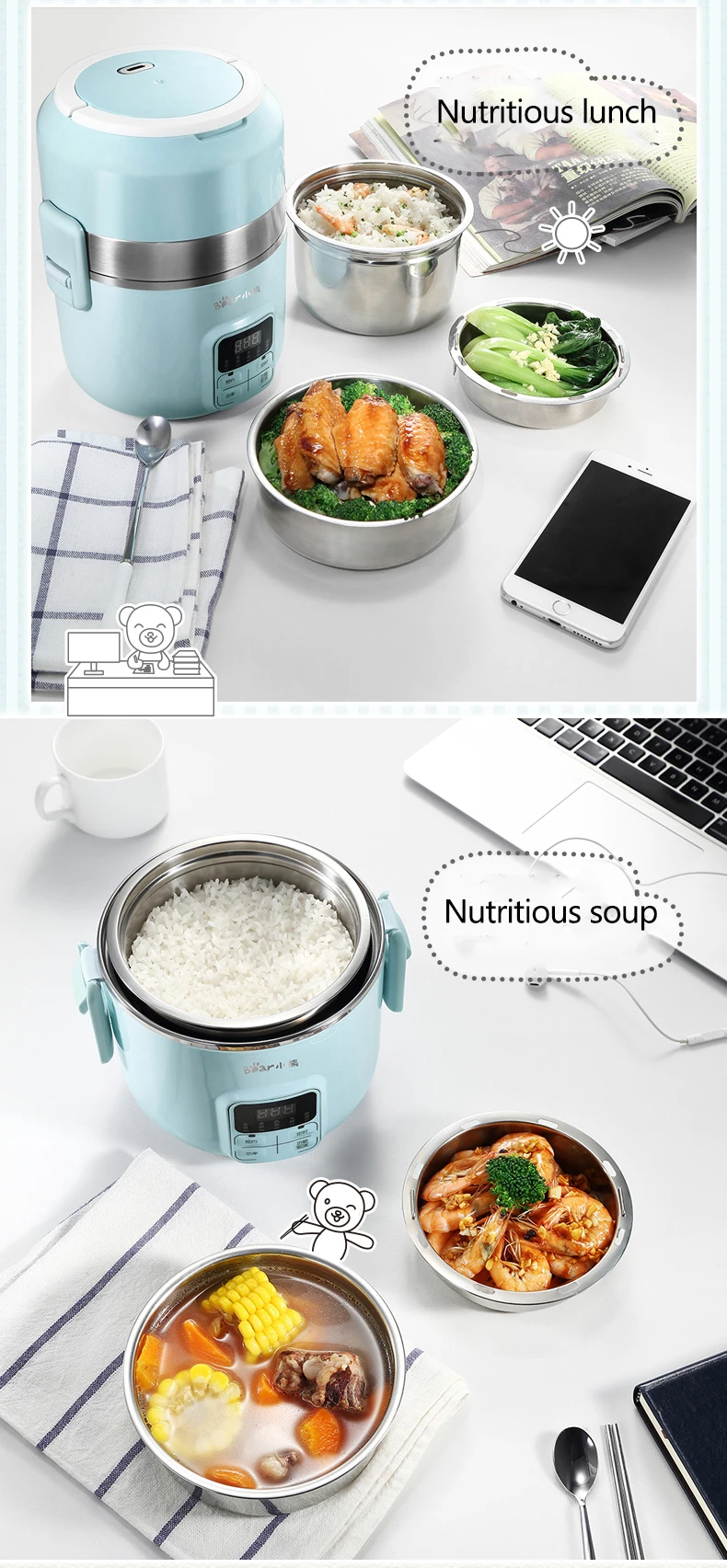 2Л Электрический ланч бокс мульти плита умная портативная рисоварка горячий горшок двухслойный подогреватель еды Электрический горшок для офиса 600 Вт