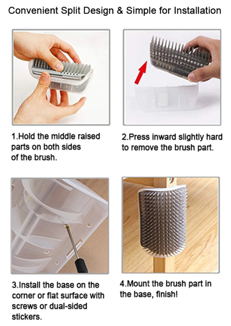 Примечание: Если вы хотите быструю доставку, пожалуйста, выберите Aliexpress 【 4,0 более мягкий кошечка для самостоятельной съемки 】наши кошечки обеспечивают большую площадь трения для кошек, что позволяет им чувствовать себя более комфортно. А также помогает кошкам удалить свободные и падающие волоски во время чистки, вашему котенку определенно понравится эта игрушка! 【Прочный и безопасный наш самокат для кошек изготовлен из прочной пластиковой щетиной, прочнее и мягче, которая может защитить кошек от царапин. И наш угловой кошачий грумер безвреден для кошек и людей из-за экологически чистых материалов 【Простой в установке этот самокат подходит практически для любого угла, дивана, стола и стула. Самоочищающаяся щетка для кошек легко устанавливается на самолет или угол с помощью винта или двустороннего клея. С помощью этой щетки для самостоятельного удаления котов кошки могут удобно чистить волосы (пожалуйста, внимательно прочитайте шаги по установке) 【Легко моется 】эта щетка для самостоятельного ухода за кошкой помогает удалить и собрать высыхающие волосы. Легко разбирать и чистить. Сэкономьте много времени на уборке