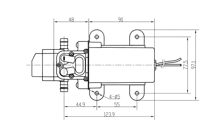 Напряжение: 12 В Максимальная мощность: 60 Вт Максимальное давление: 0.8Mpa Рабочее давление: 0.5Mpa Расход: 5л/мин всасывающая головка: 1,5 м Напор: 50 м