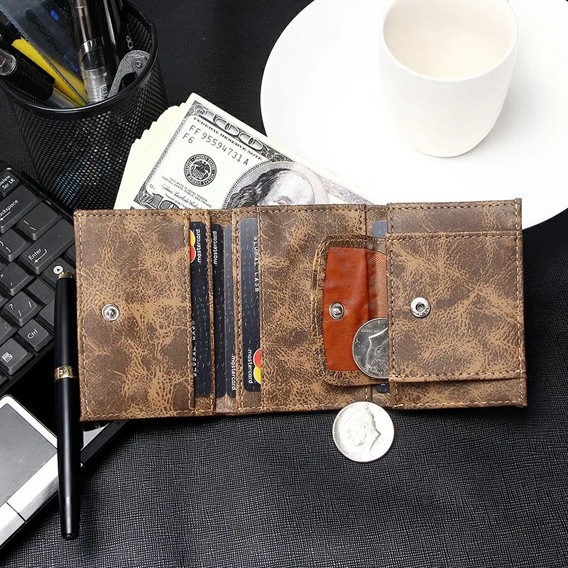 Мужской кошелек из искусственной кожи в три сложения, короткий кошелек для монет, несколько отделений, кредитный держатель для карт, Мужской винтажный клатч, Тонкий деловой держатель для карт