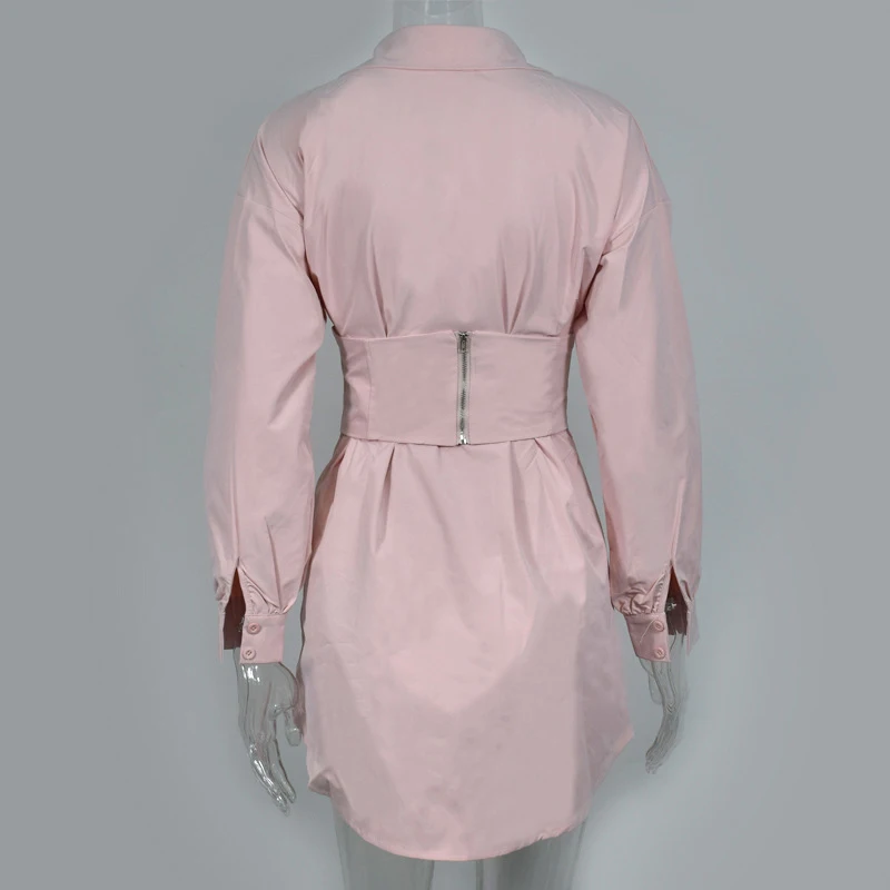 Женское платье-рубашка с длинным рукавом Anbenser, повседневное винтажное розовое платье с поясом-корсетом для вечеринок, белое платье