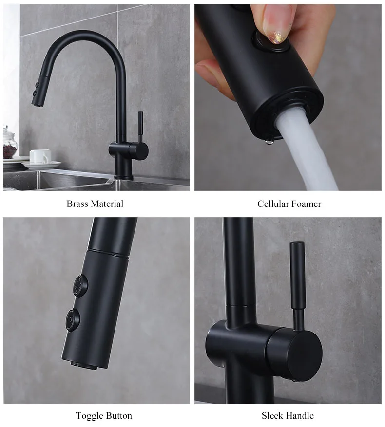 Кухонный кран с выдвижной ручкой, распылитель, смеситель, краны для горячей и холодной воды, кран с креплением на палубу, Черный кран, латунный кухонный кран, набор для крана