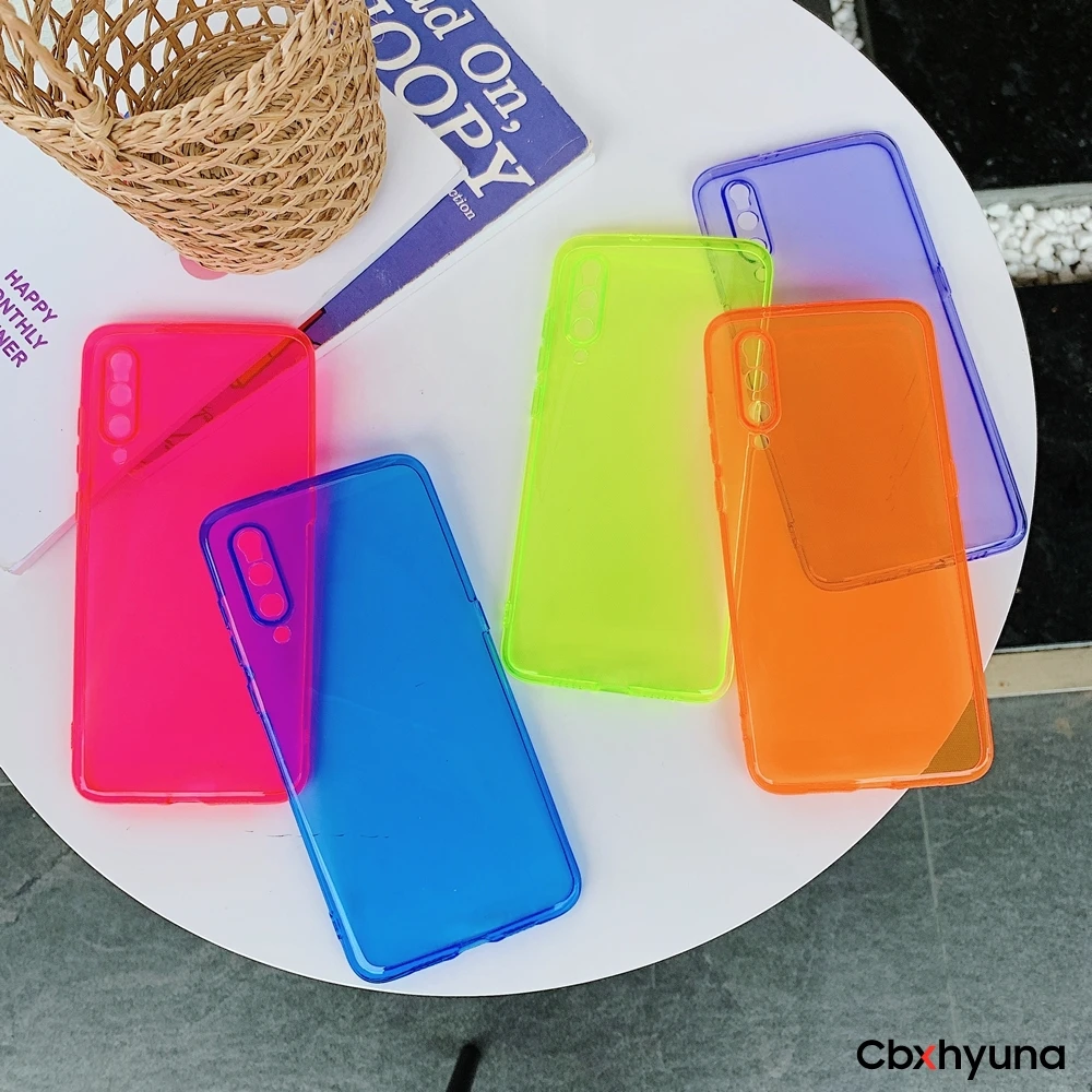 Неоновый желтый флуоресцентный яркий цвет прозрачный мягкий Силиконовый ТПУ чехол для Xiaomi Mi 9 10 9T Lite Redmi Note 7 8 Pro 10 чехол