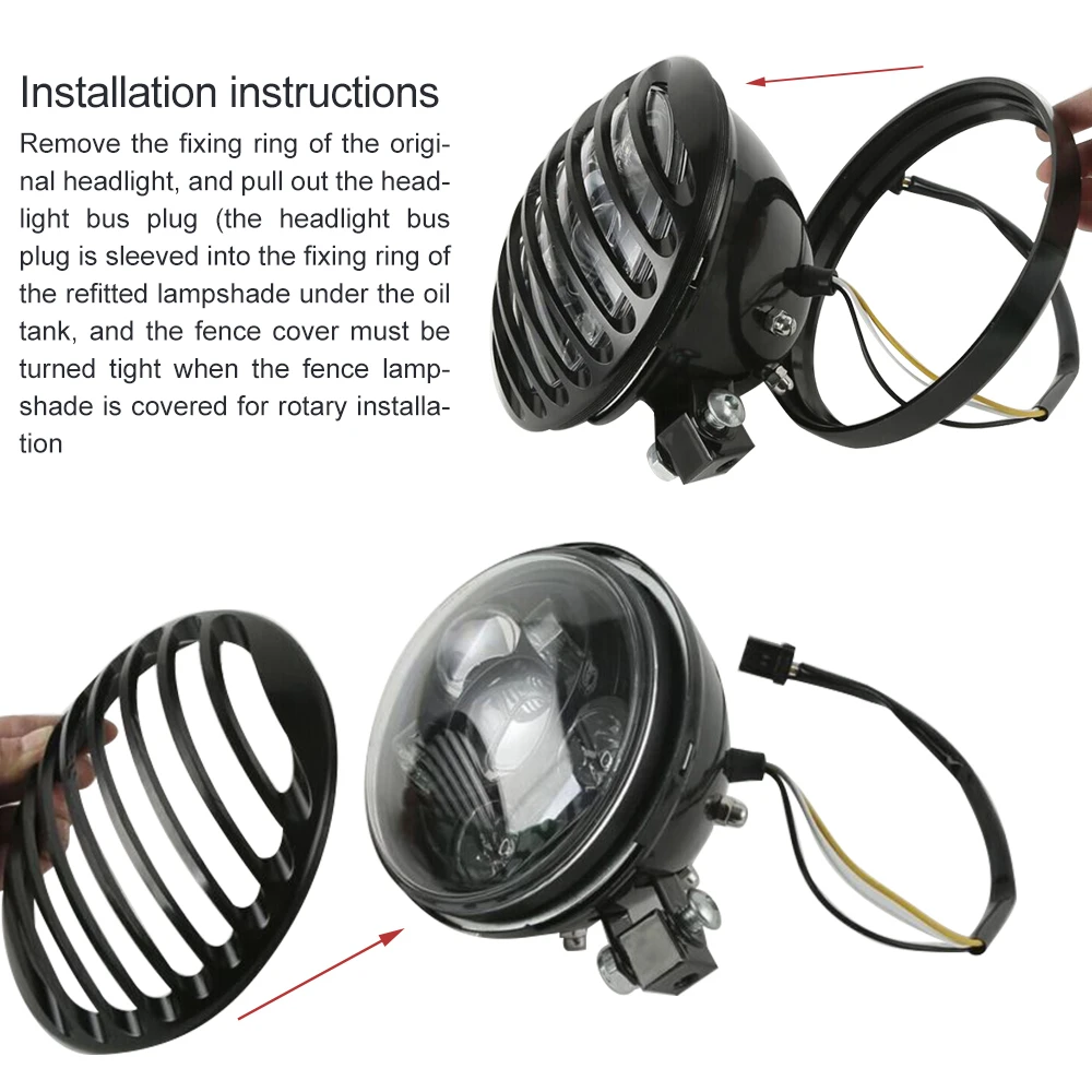 Удалите Оригинальное фиксированное кольцо фары, отключите штекер шины фар (штекер шины фар в баке ниже), установите в модифицированный фиксированный абажур, крытое поворотное крепление решетки фары