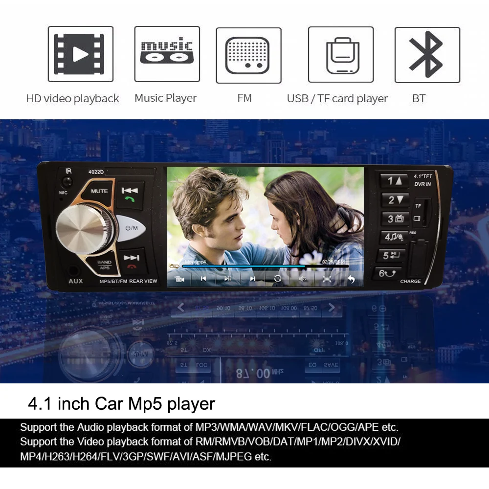 4,1 дюймов 12V Bluetooth автомобильный радиоприемник 1 din автомобильный стерео fm-радио MP3 аудиоплеер 5V Зарядное устройство USB SD AUX 1 DIN Авторадио-вид сзади Камера автомобиля Mp5 плеер