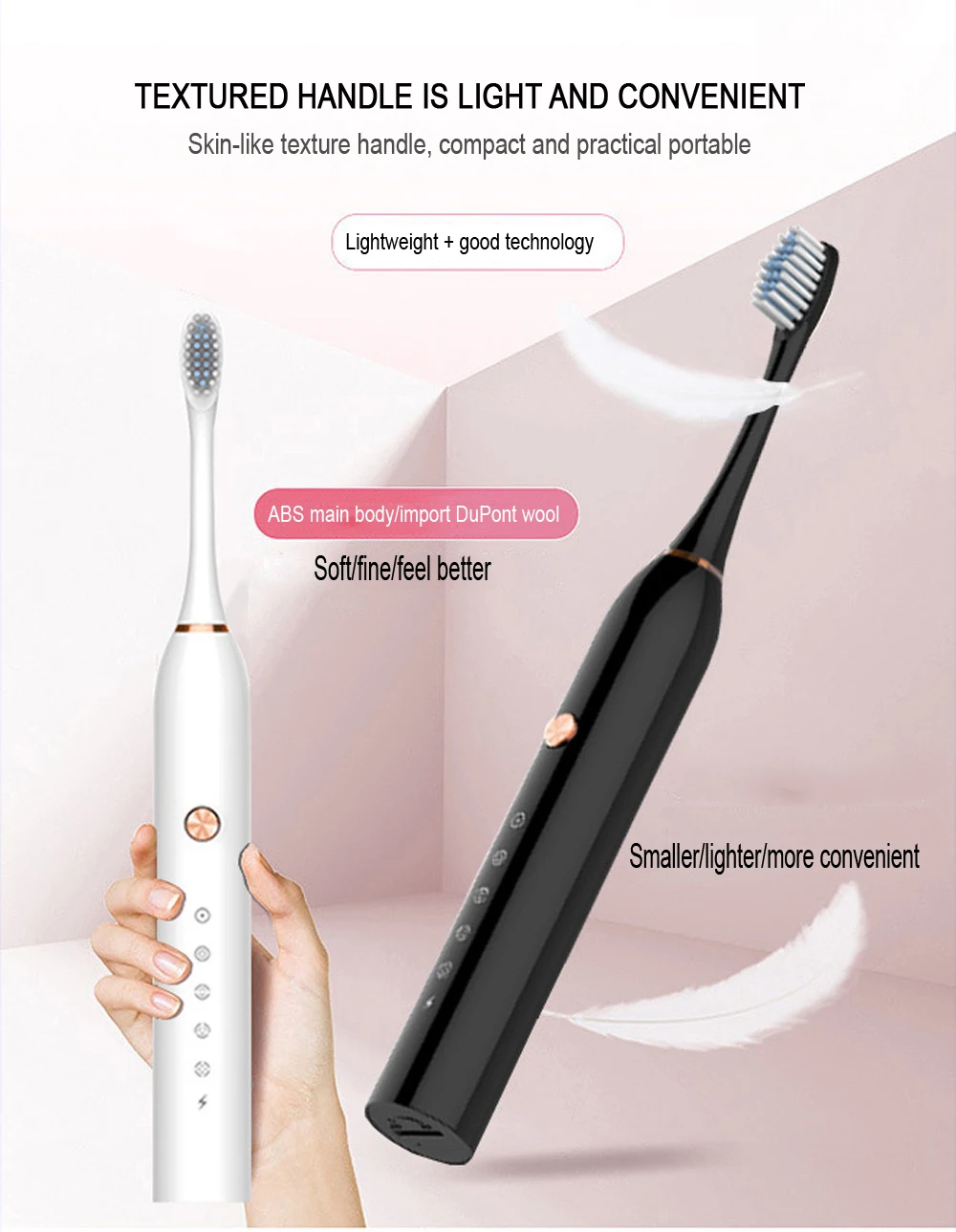 Особенности: ●Importeddelicate мягких волос ● IPX7body водонепроницаемый, не бойтесь влажной воды ● Время зарядки 4 часа, длительный срок службы батареи 30 дней ● 2 минуты научной чистки 30 секунд напоминания о зоне ● Высокая частота вибрации, Глубокая очистка рта ● Профессиональный высокочастотный Вибрационный метод чистки ● Режим двухскоростной очистки более комфортный в домашних условиях: стандартный режим очистки, более сильный ● Совместимость: триумф, профессиональная забота, жизненная сила и передовая сила. ● 46 портативный светильник, электрическая зубная щетка, профессиональная высокочастотная вибрация для очистки зубов, импортные тонкие мягкие десны для ухода за волосами ● Стоматологи рекомендуют заменять голову каждые три месяца. Просто замените головки зубной щетки. Посылка включает в себя: Зубная щётка ручка Зубная щётка головки USB Зарядное устройство Руководство по эксплуатации